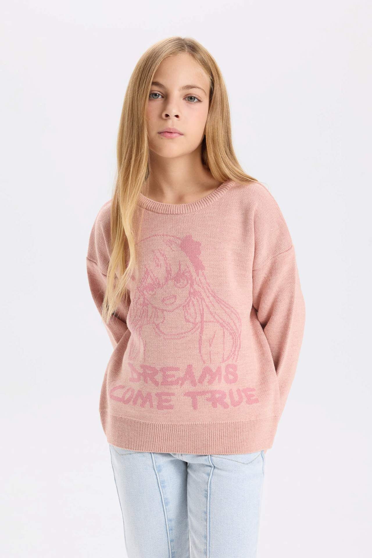 DeFacto Kız Çocuk Pembe Regular Fit Bisiklet Yaka Desenli Triko Kazak