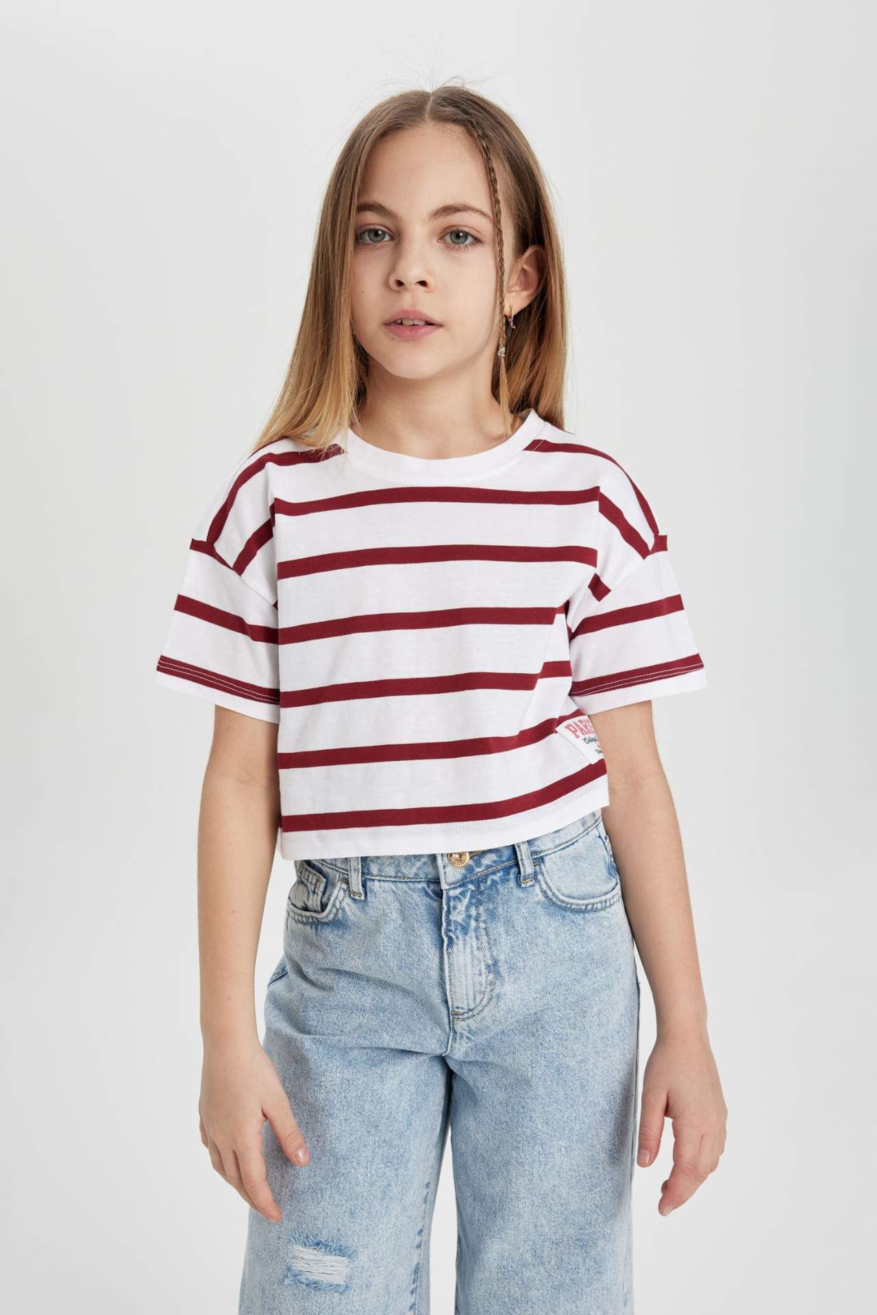 DeFacto Kız Çocuk Penye Çizgili Kısa Kollu Tişört