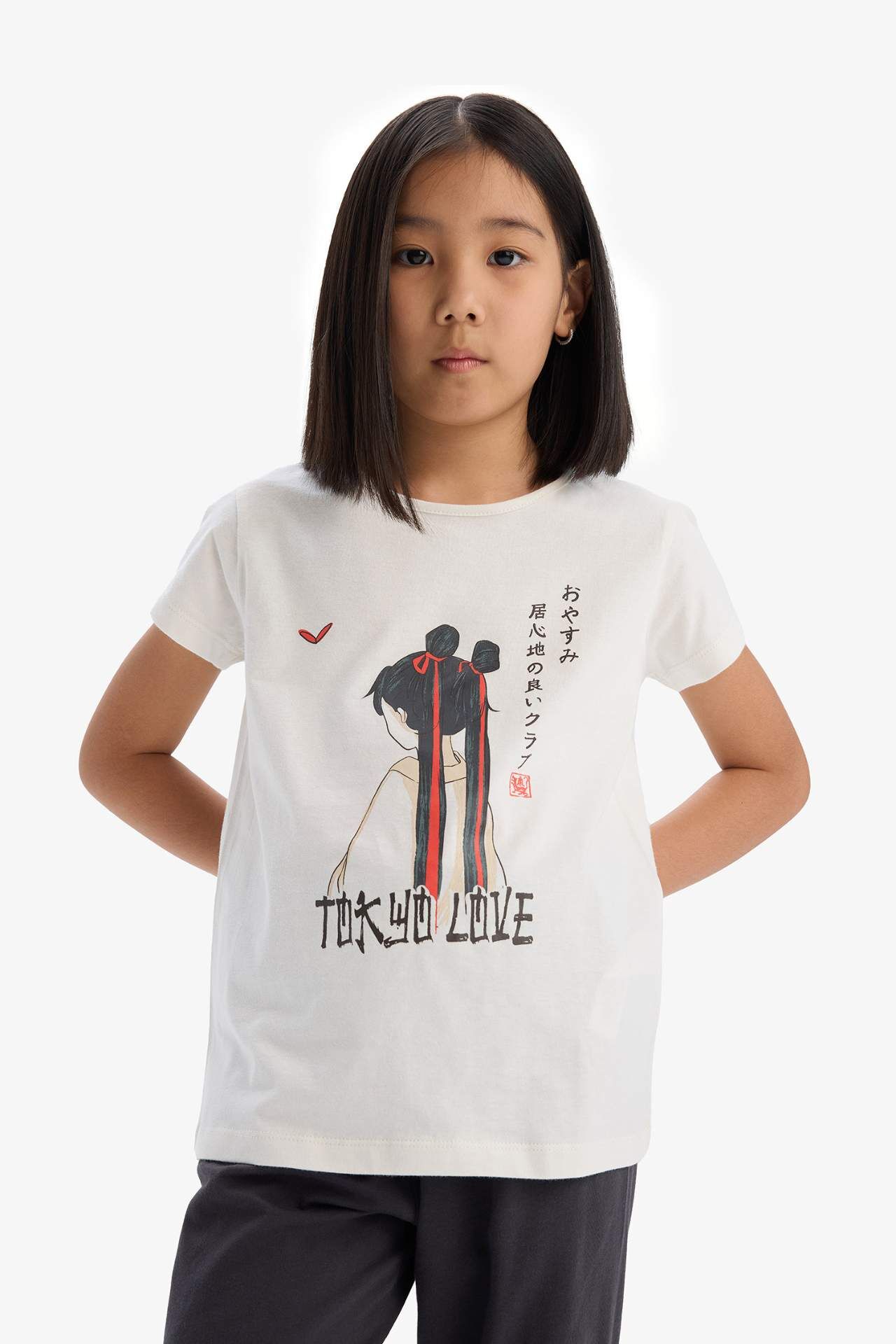 DeFacto Kız Çocuk Pijama Takımı Baskılı Kısa Kollu Pijama Üstü Esnek Belli Uzun Pijama Altı
