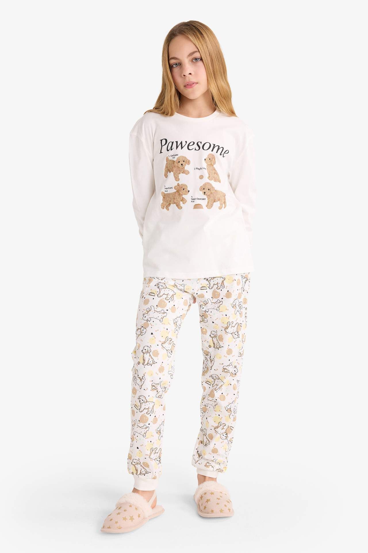 Kız Çocuk Pijama Takımı Baskılı Uzun Kollu Üst Uzun Alt