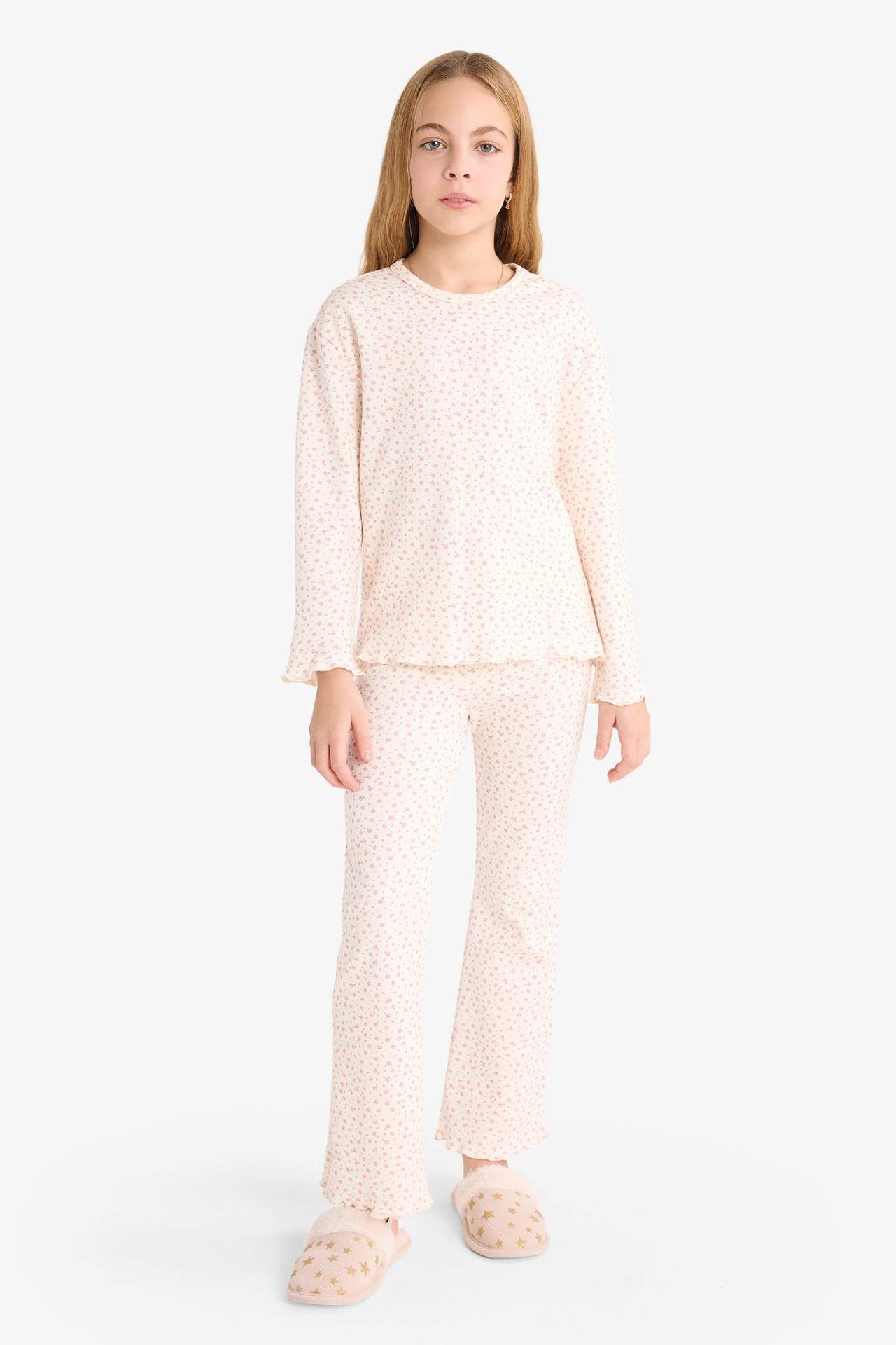 Kız Çocuk Pijama Takımı Desenli Uzun Kollu Üst Uzun Alt