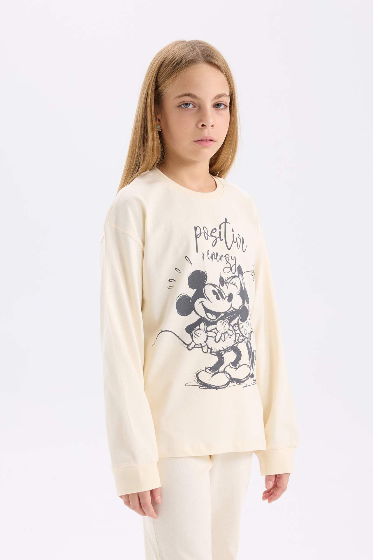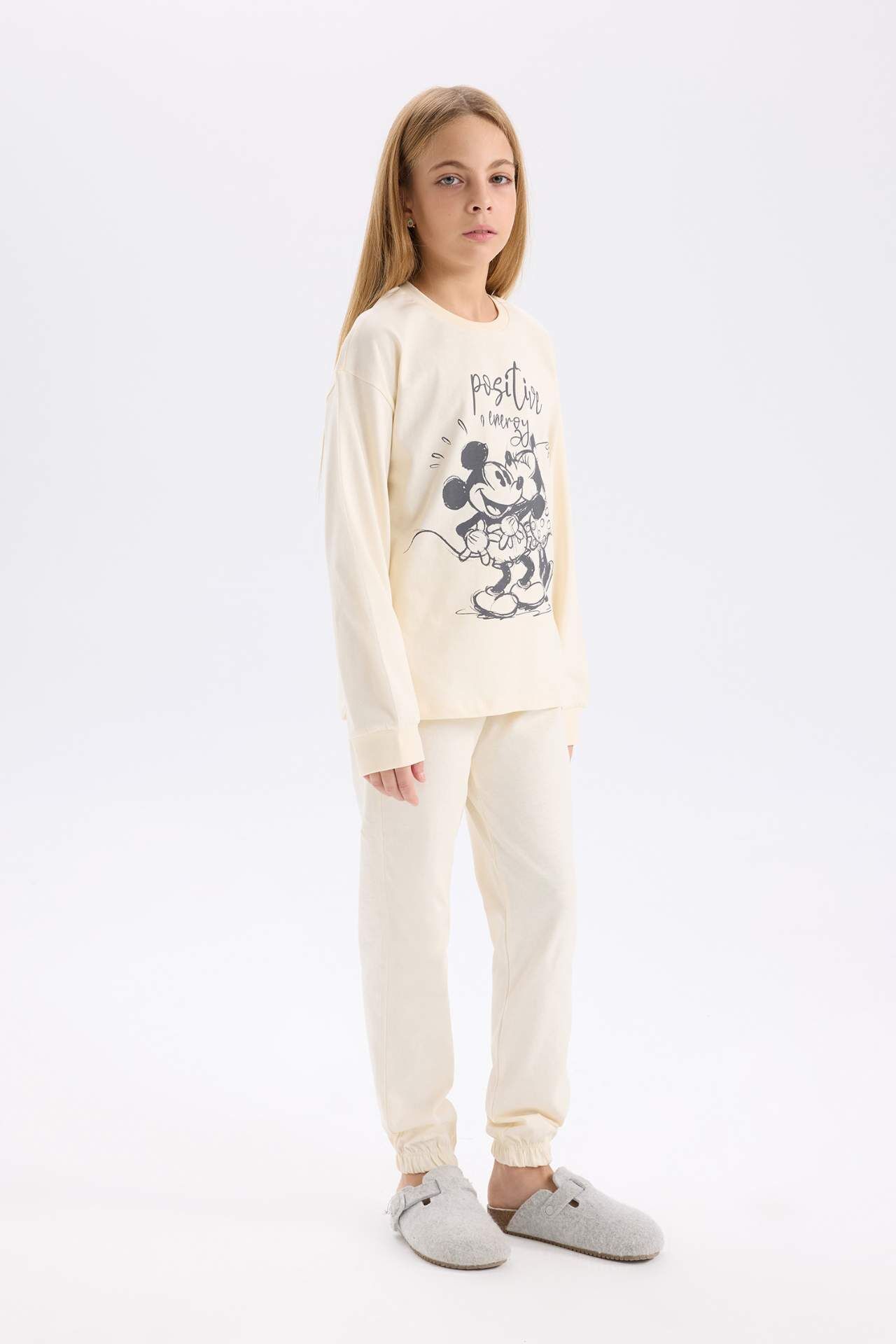 DeFacto Kız Çocuk Pijama Takımı Disney Mickey & Minnie Regular Fit Bisiklet Yaka Uzun Kollu Üst Uzun Alt