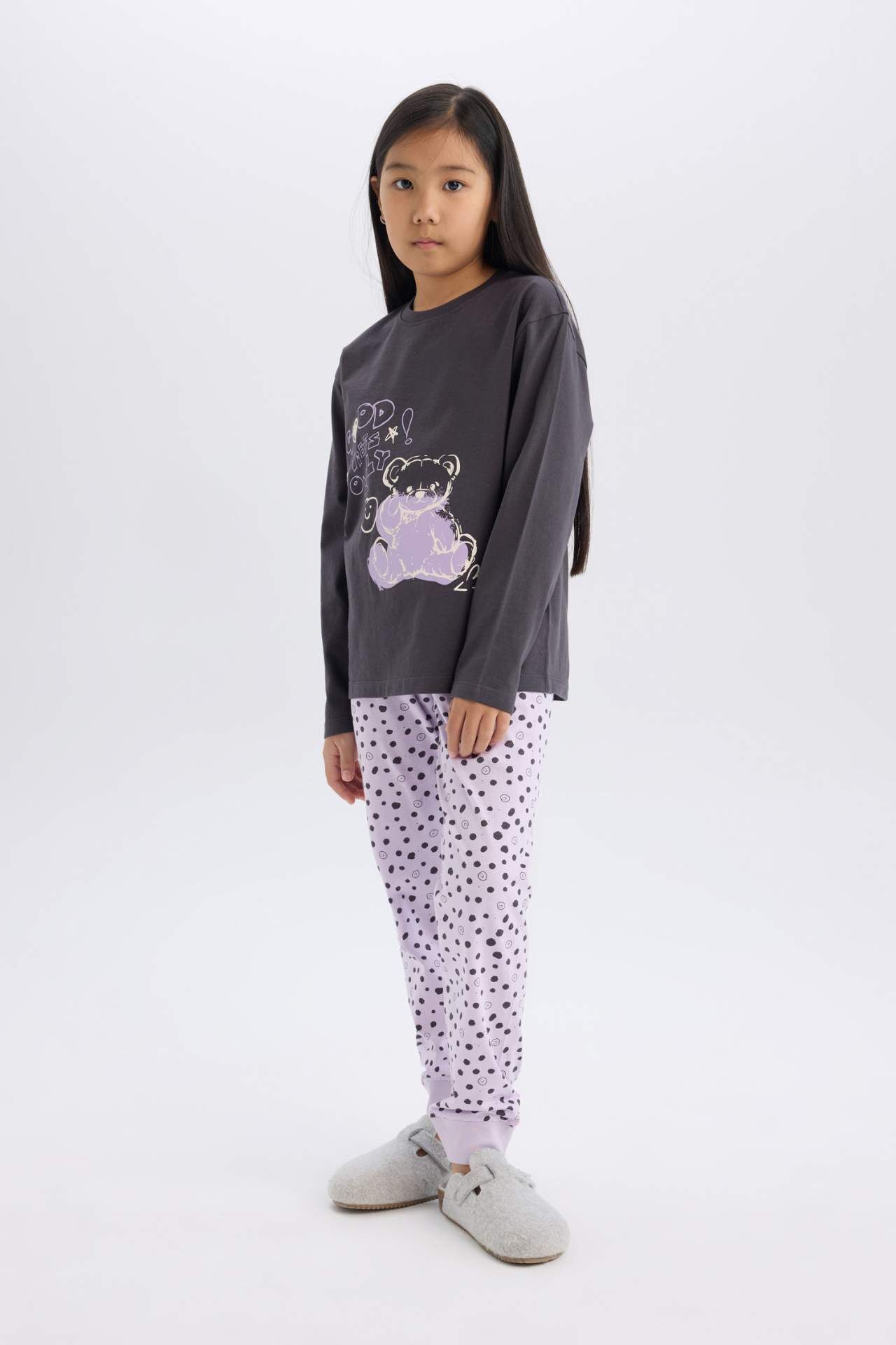DeFacto Kız Çocuk Pijama Takımı Uzun Kollu Pijama Takımı Esnek Belli Uzun Pijama Altı