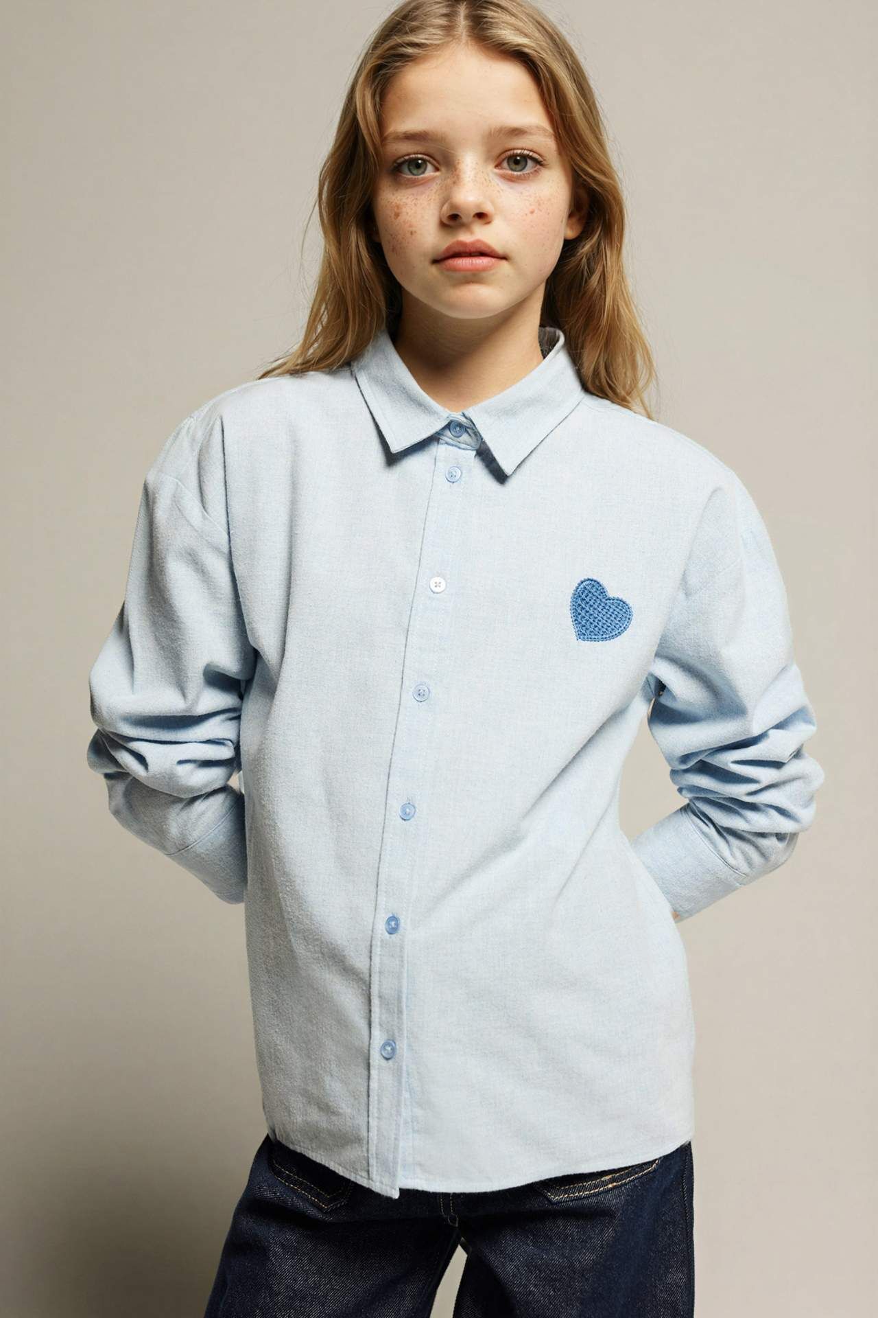 Kız Çocuk Poplin Uzun Kollu Gömlek, hafif poplin kumaşıyla rahat ve şık bir kullanım sunar. Modern kesimi ve zarif tasarımıyla her kombine uyum sağlar. Pamuk 27%,Viskoz 20%,Poliester 53% Manken Bedeni: Göğüs: 0 Boy: 1,5 Basen: 0 Bel: 0