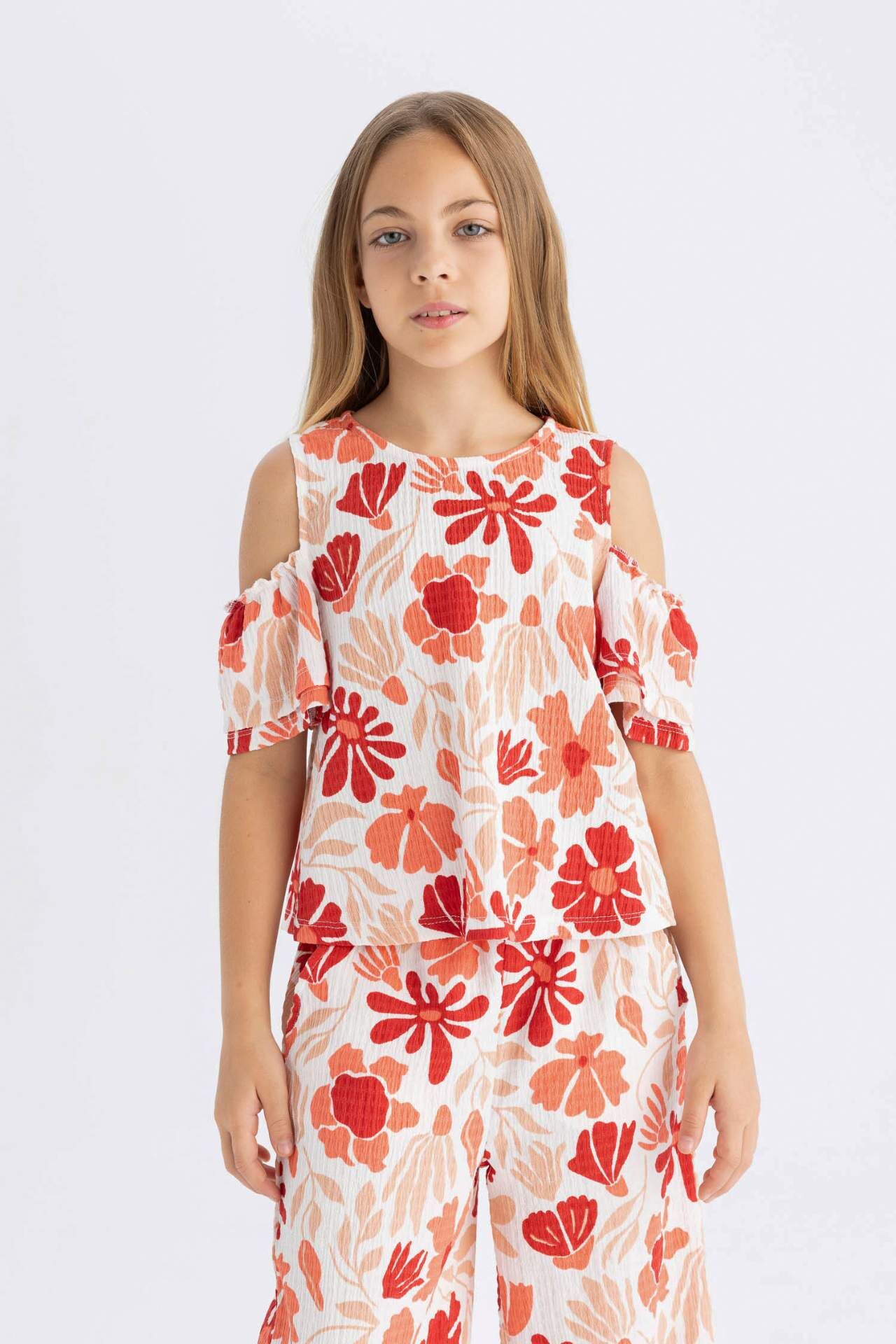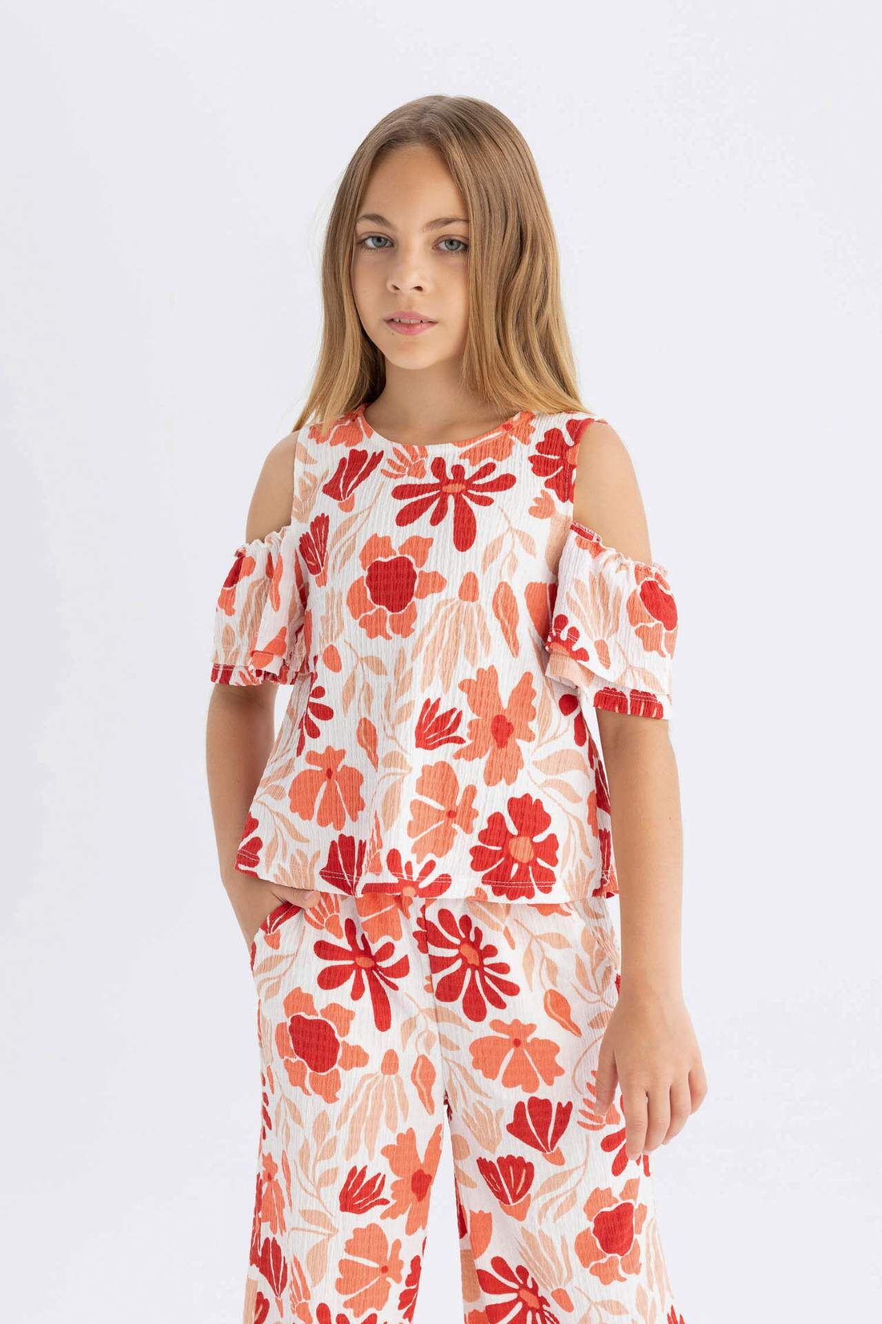 DeFactoFit Kız Çocuk Regular Fit Bisiklet Yaka Bürümcük Kısa Kollu Tişört C6890A824SMRD116