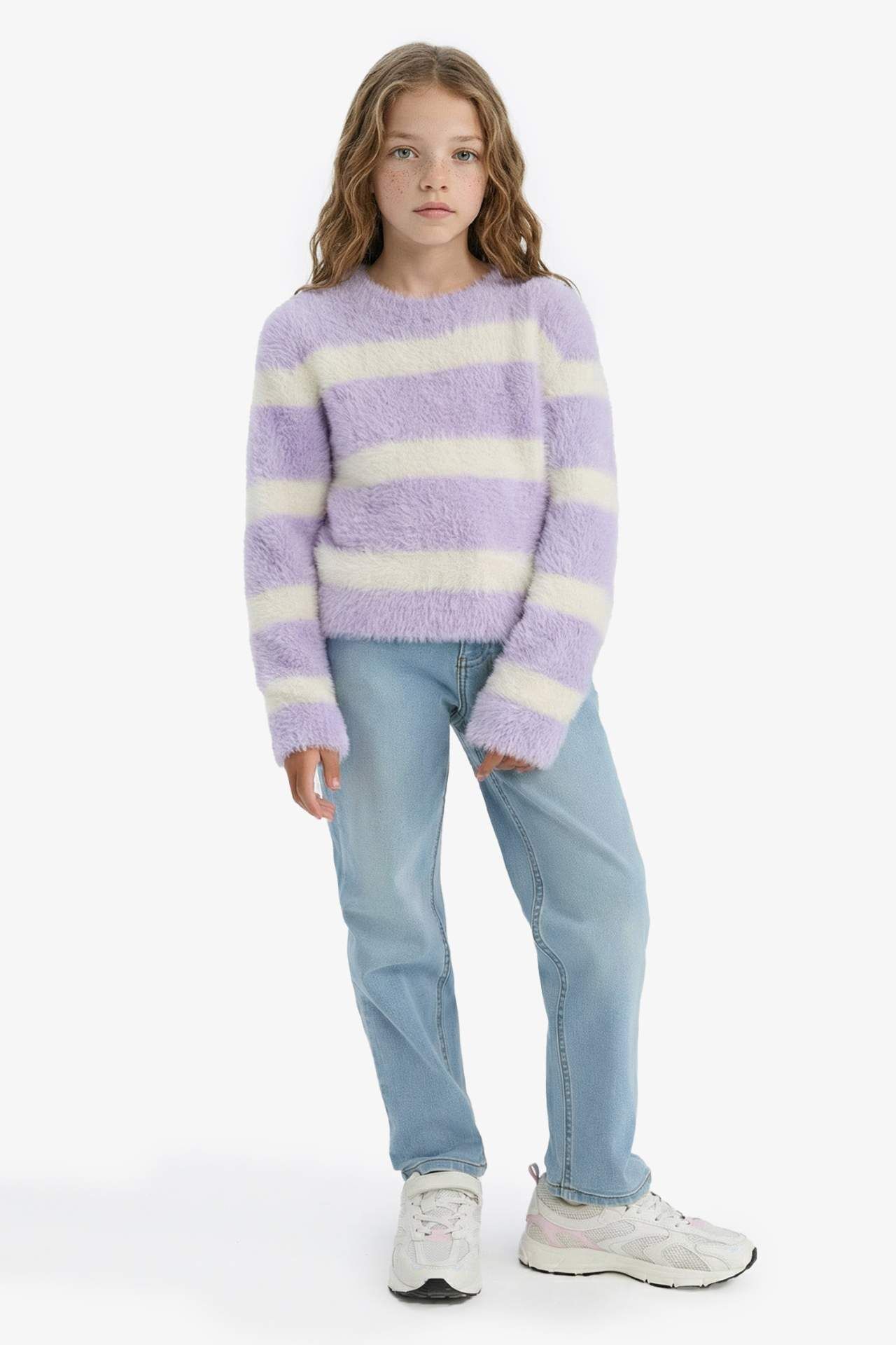 DeFacto Kız Çocuk Regular Fit Bisiklet Yaka Çizgili Kazak D1196A824WNPR249