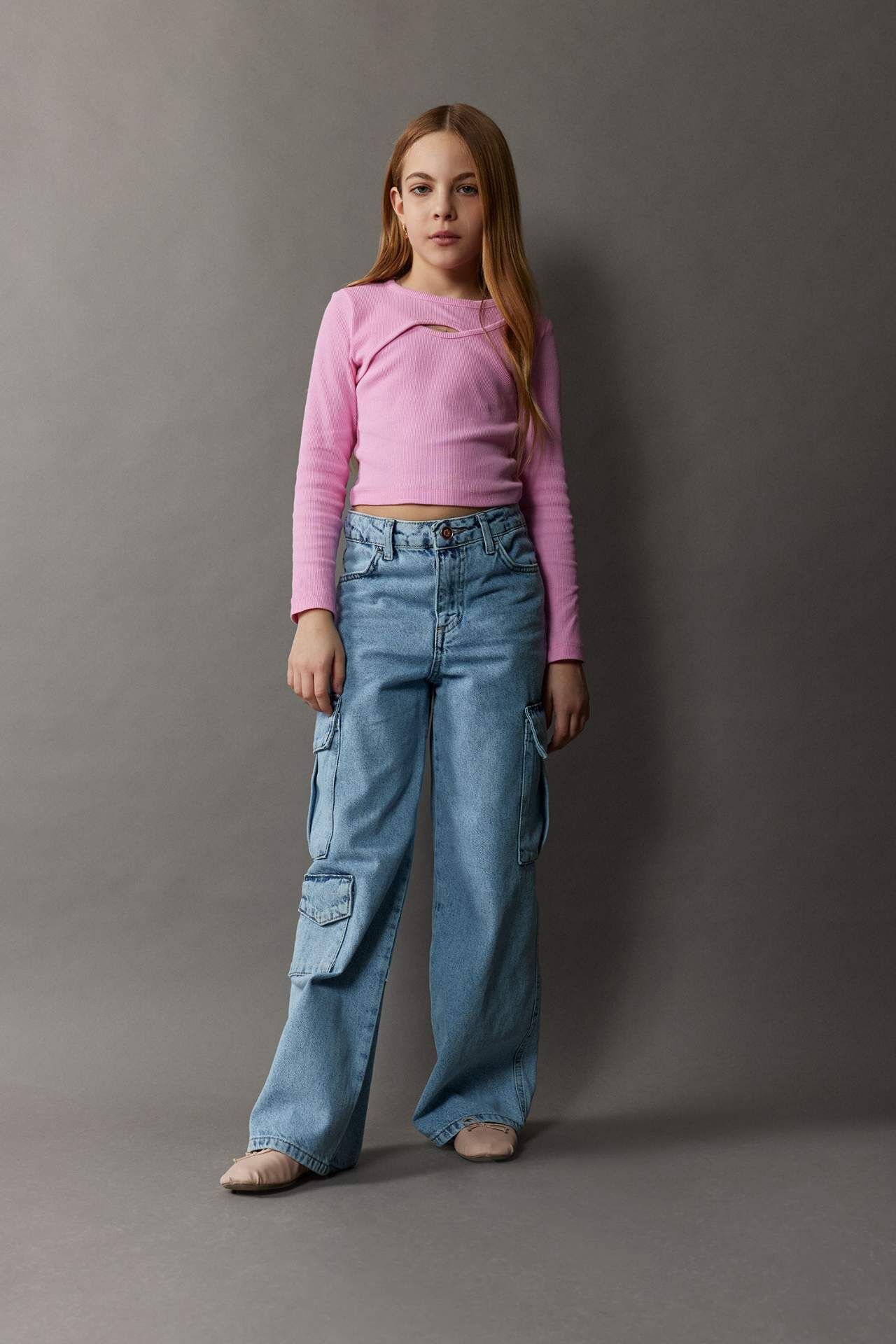 DeFacto Kız Çocuk Regular Fit Bisiklet Yaka Fitilli Kaşkorse Uzun Kollu Tişört