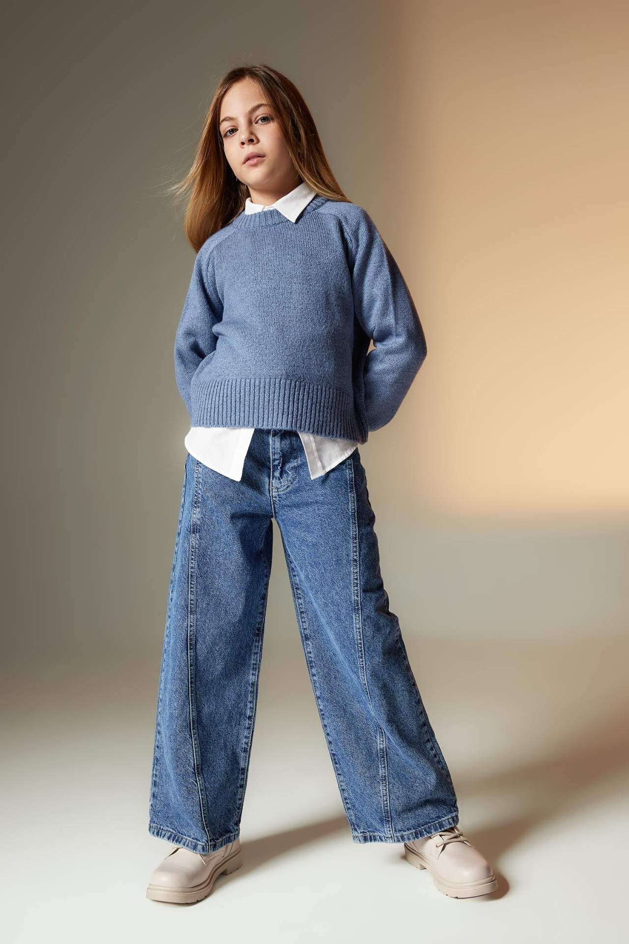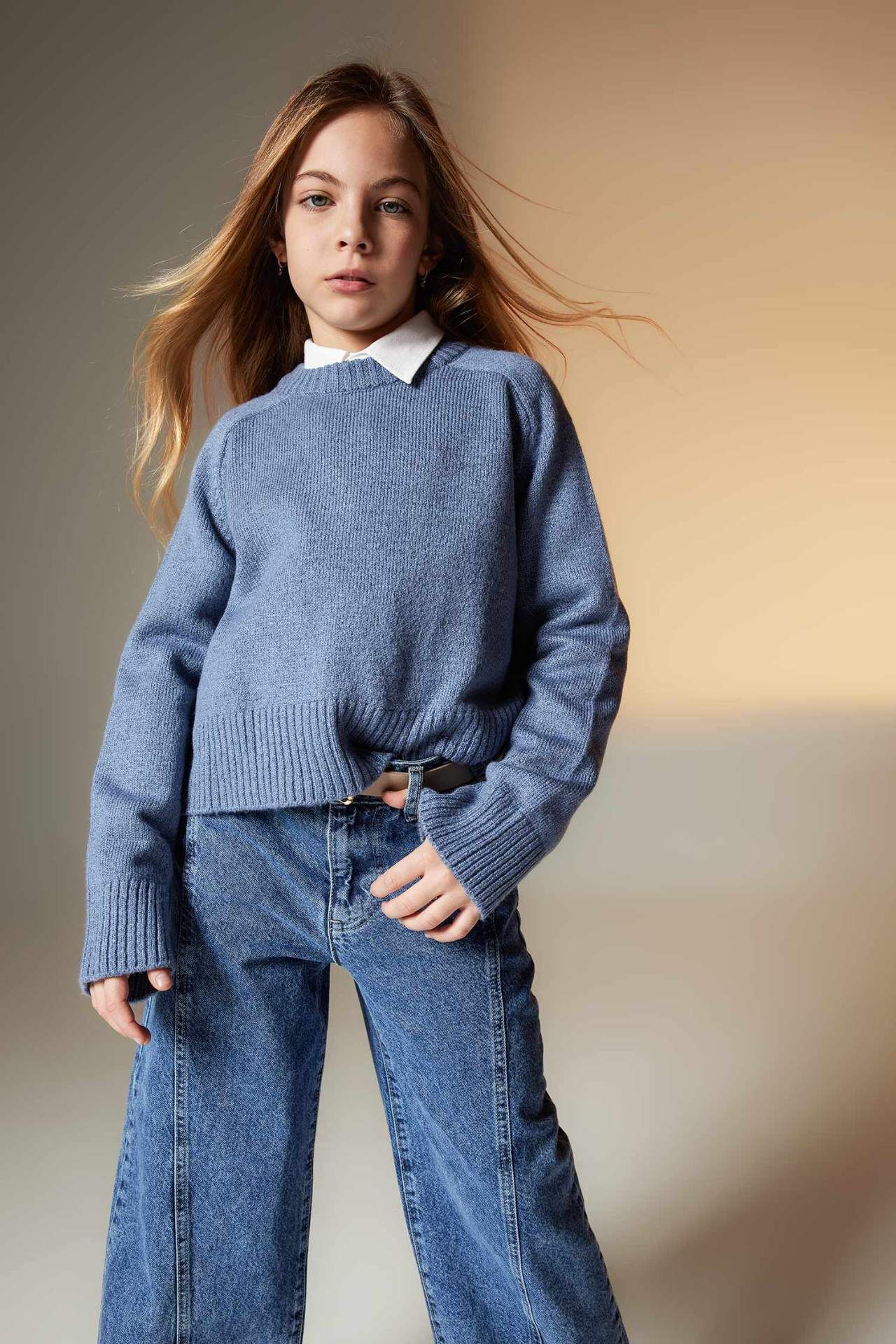 DeFacto Kız Çocuk Regular Fit Bisiklet Yaka Kazak