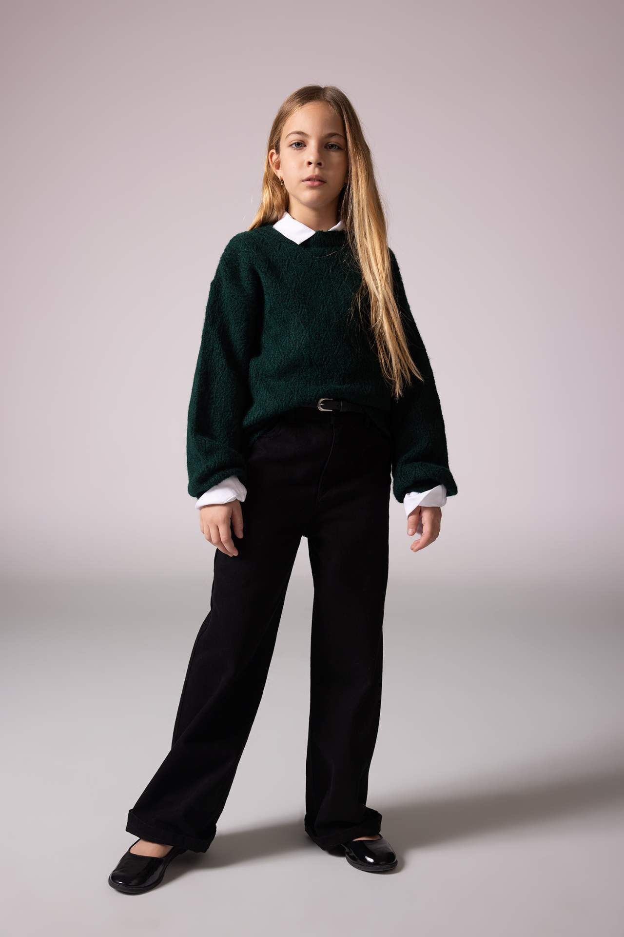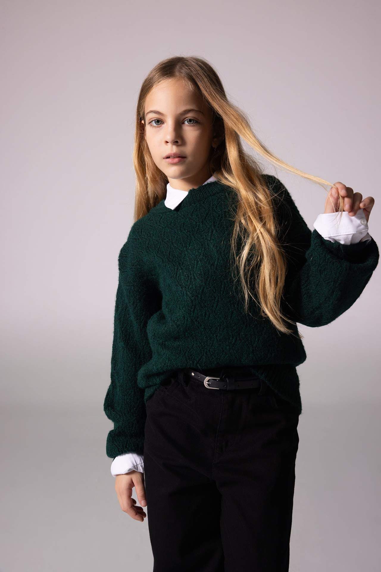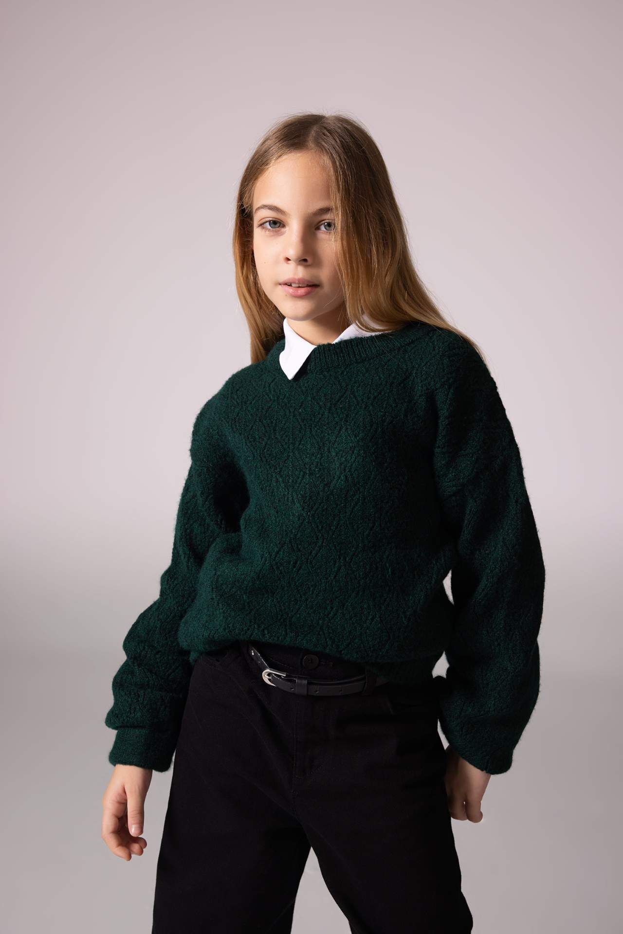 DeFacto Kız Çocuk Regular Fit Bisiklet Yaka Kazak B3865A823WNGN1213