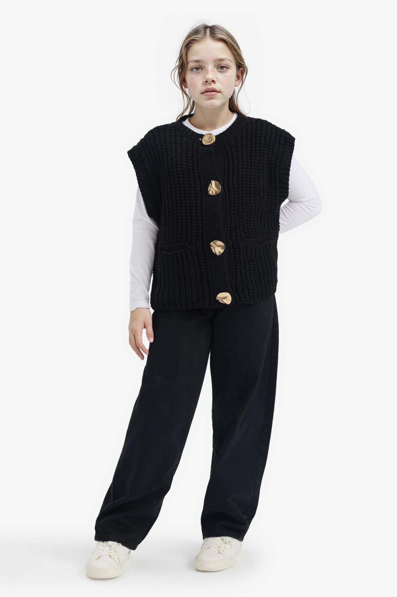 Kız Çocuk Bisiklet Yaka Düğmeli Süveter, yumuşak dokusu ve rahat kesimiyle şıklığı konforla birleştirir. Düğme detayları ve klasik bisiklet yaka tasarımı, miniklerin kombinlerine zarif bir dokunuş katar. Akrilik 100%,Akrilik 100%,Akrilik 100%,Akrilik 100%,Akrilik 100%,Akrilik 100%,Akrilik 100% Manken Bedeni: Göğüs: 0 Boy: 1,35 Basen: 0 Bel: 0