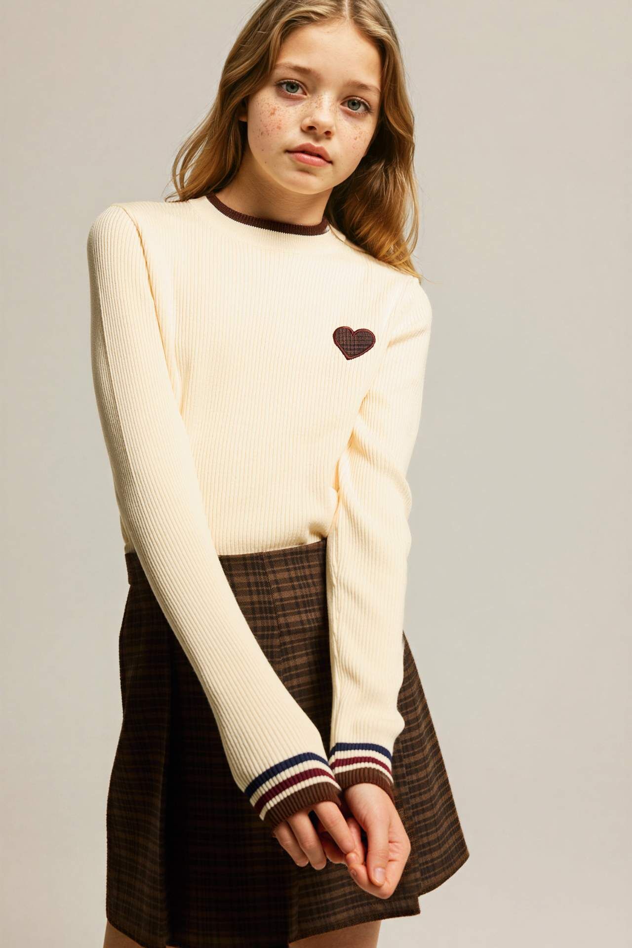 Kız Çocuk Regular Fit Dik Yaka Nakışlı Kazak
