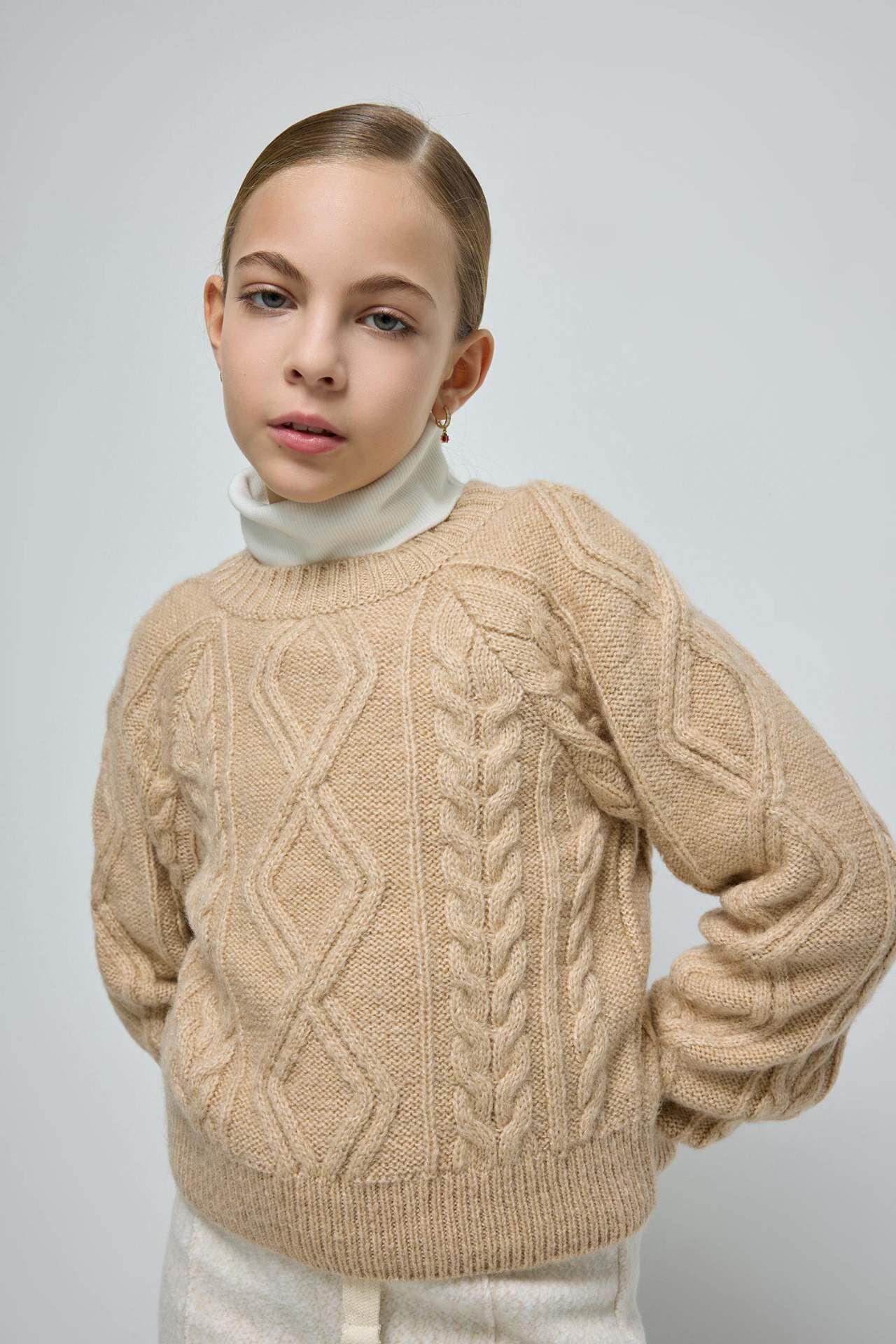 DeFacto Kız Çocuk Regular Fit Örgü Detaylı Bisiklet Yaka Triko Kazak D1361A824WNBG588