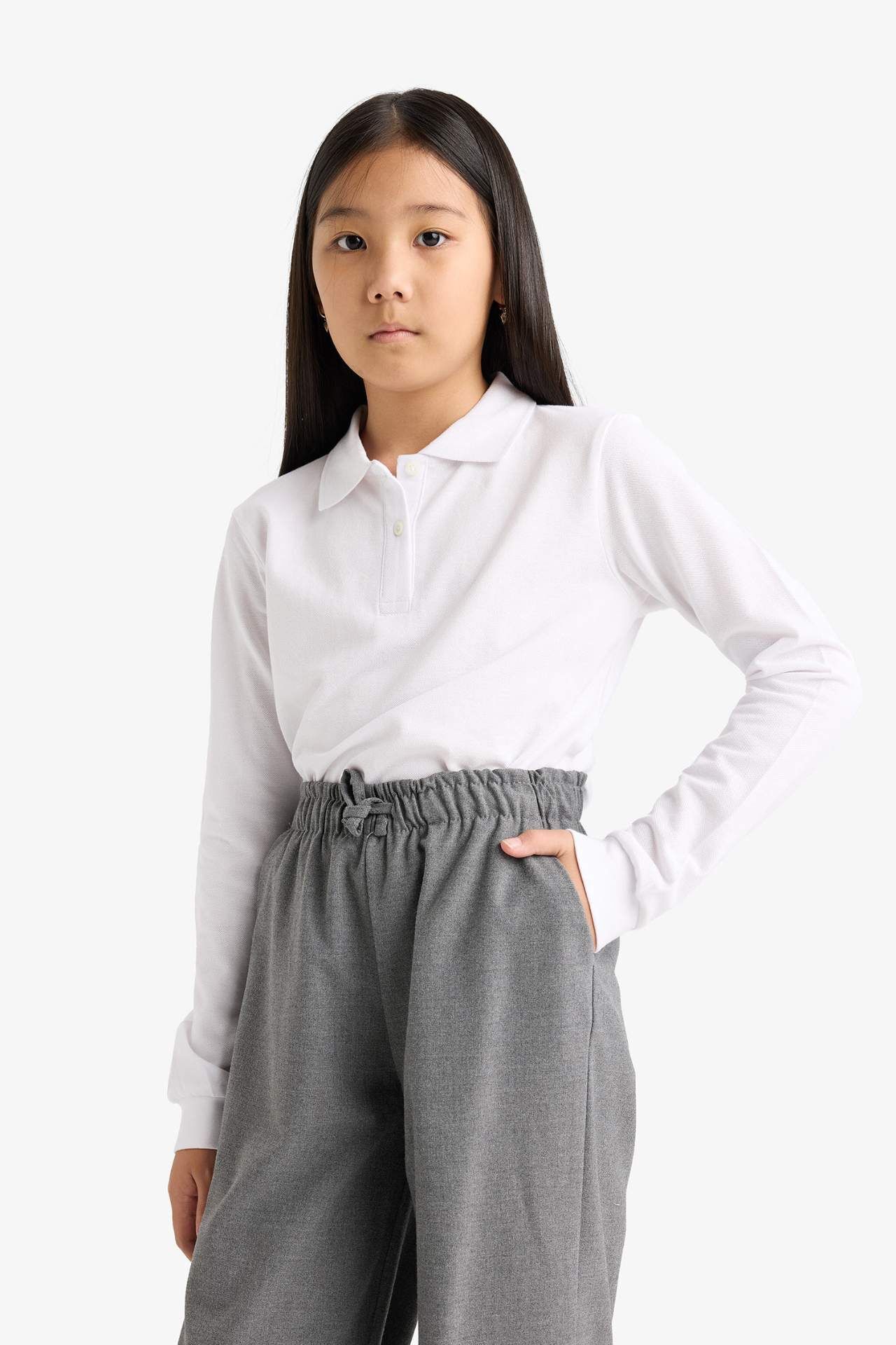 DeFacto Kız Çocuk Regular Fit Polo Yaka Basic Düz Pike 2'li Uzun Kollu Polo Tişört