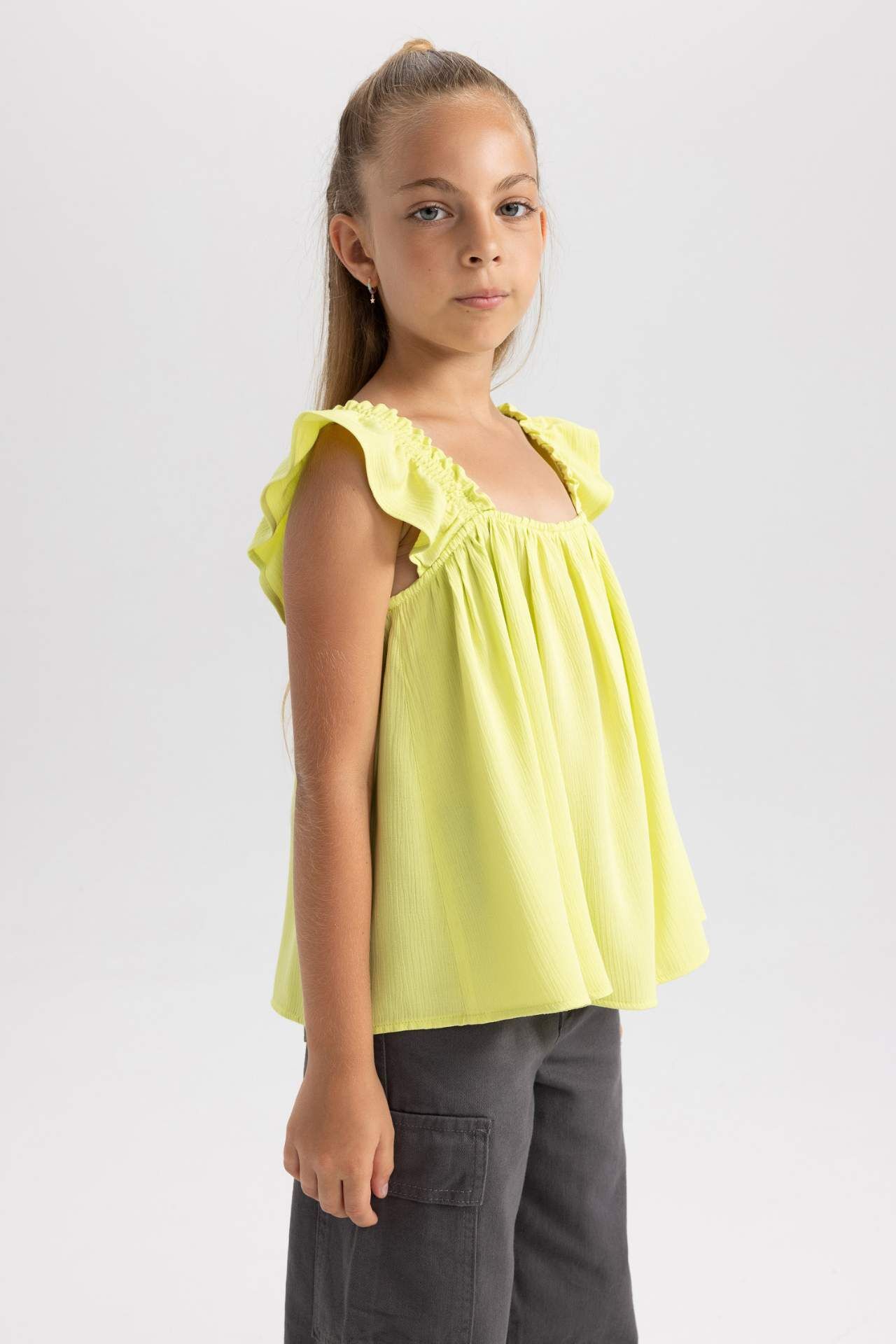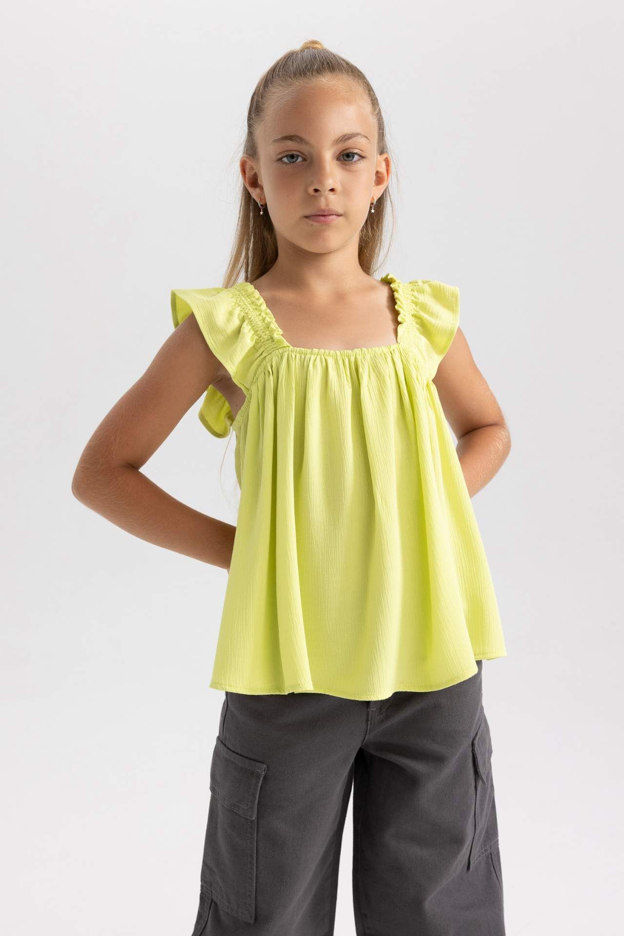 DeFacto Kız Çocuk Regular Kolsuz Viskon Bluz Yeşil