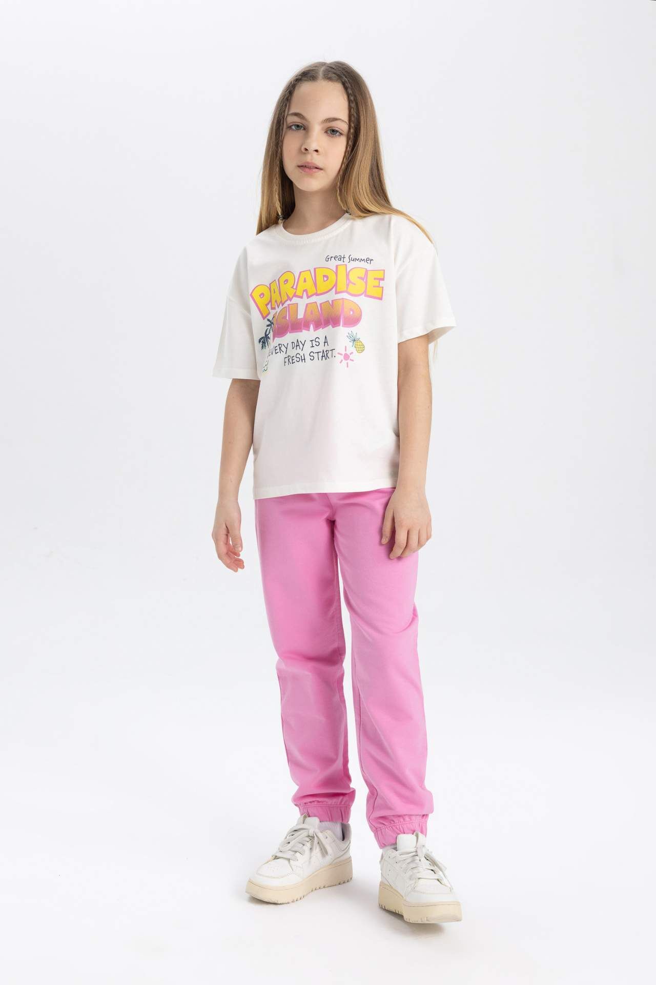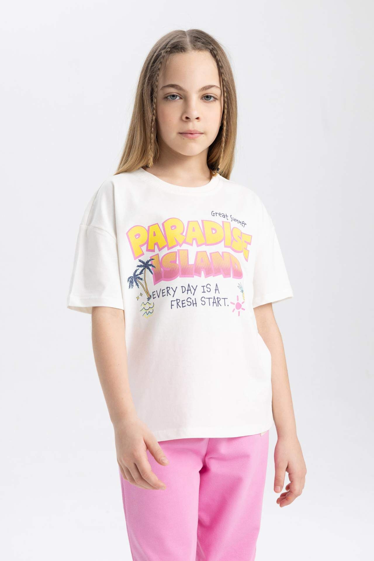 DeFacto Kız Çocuk Relax Fit Baskılı Kısa Kollu Tişört
