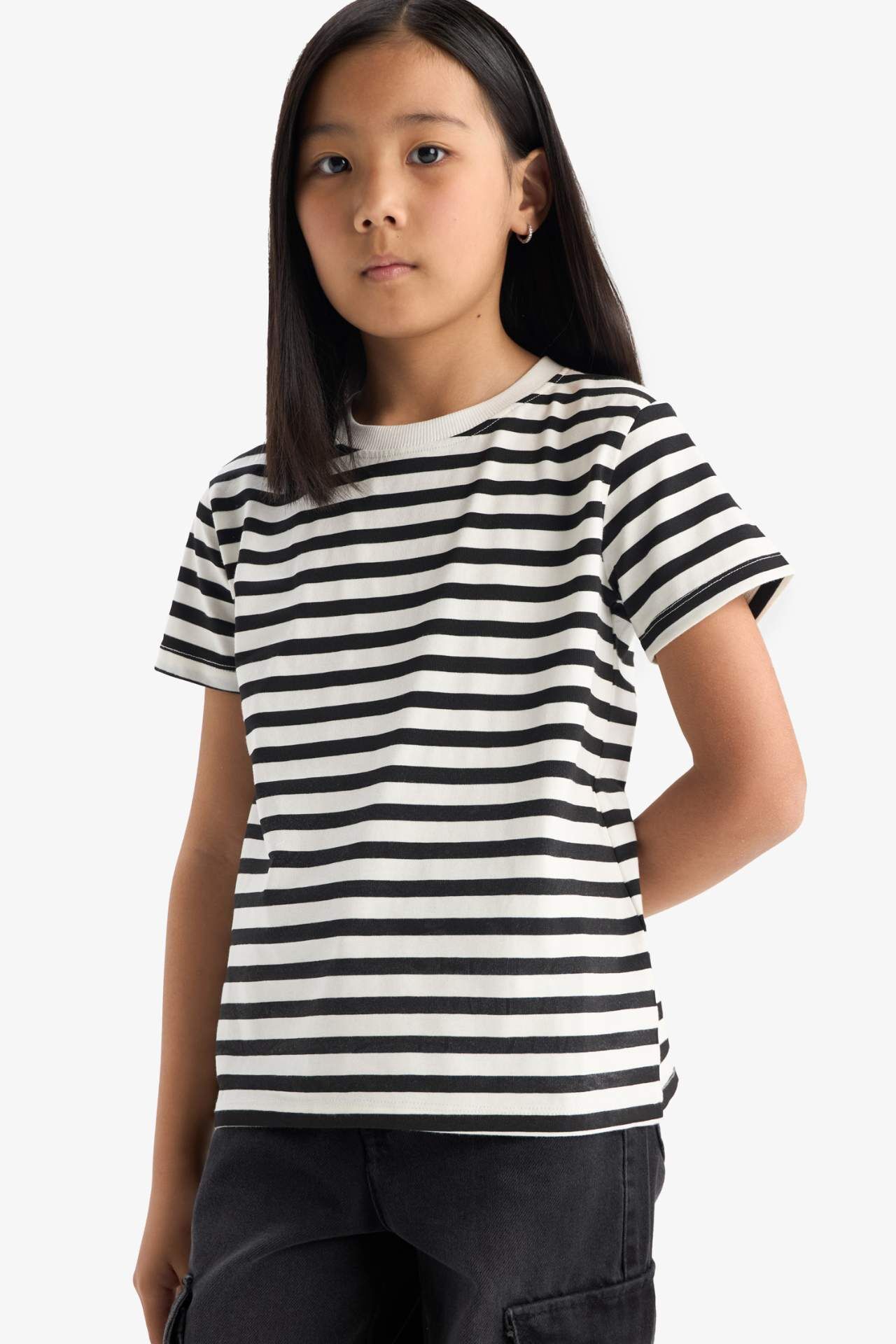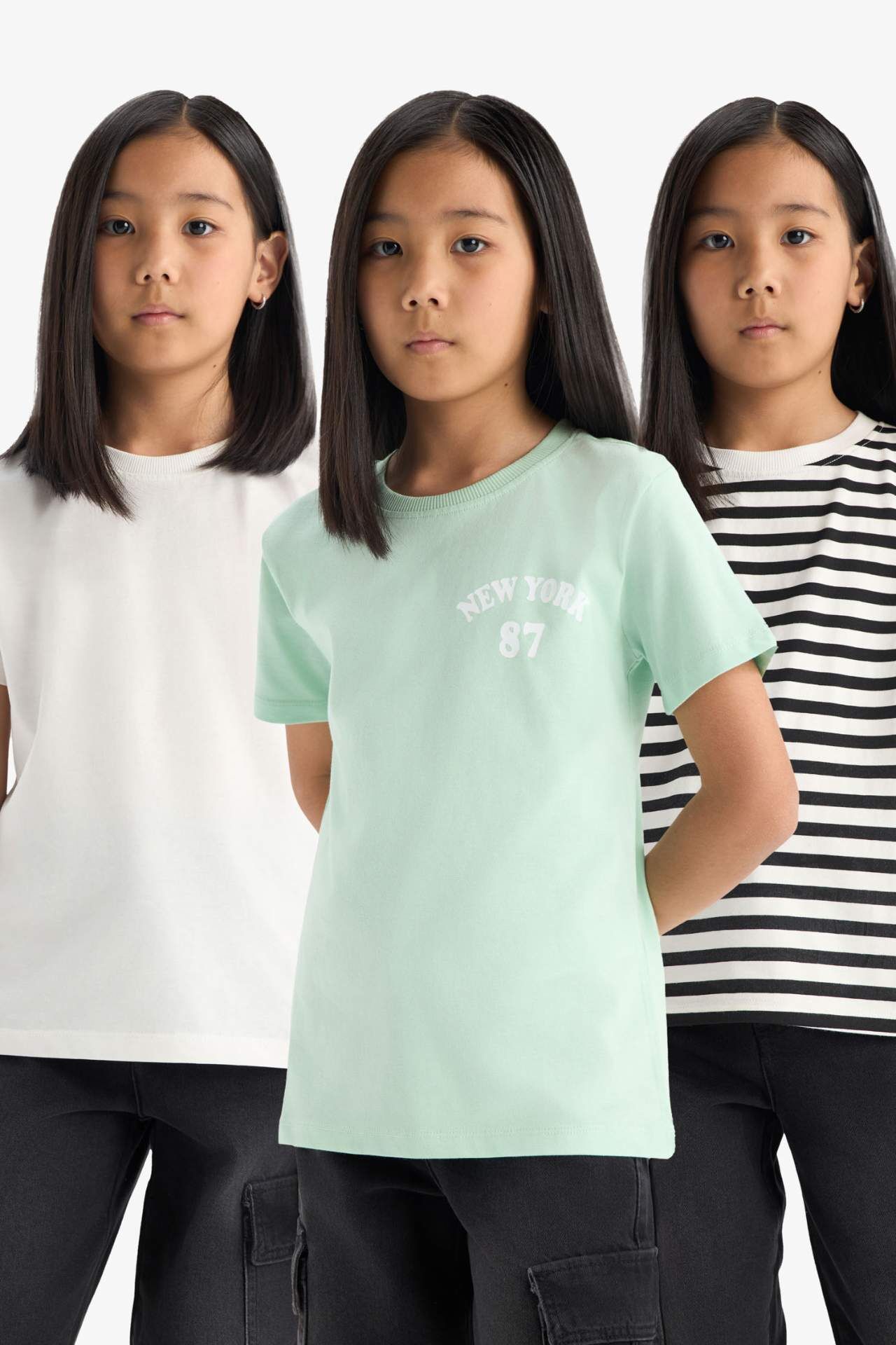 DeFacto Kız Çocuk Relax Fit Bisiklet Yaka 3'lü Kısa Kollu Tişört