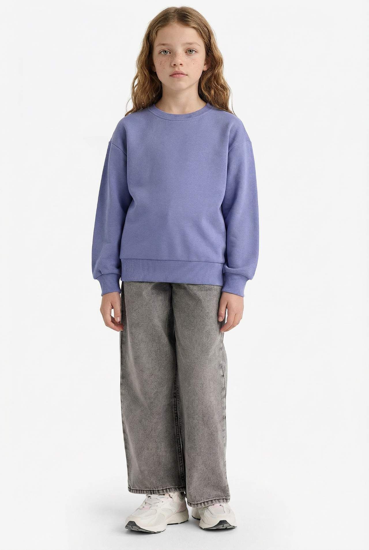 DeFacto Kız Çocuk Relax Fit Bisiklet Yaka Basic Düz Sweatshirt A2797A825AUPR510
