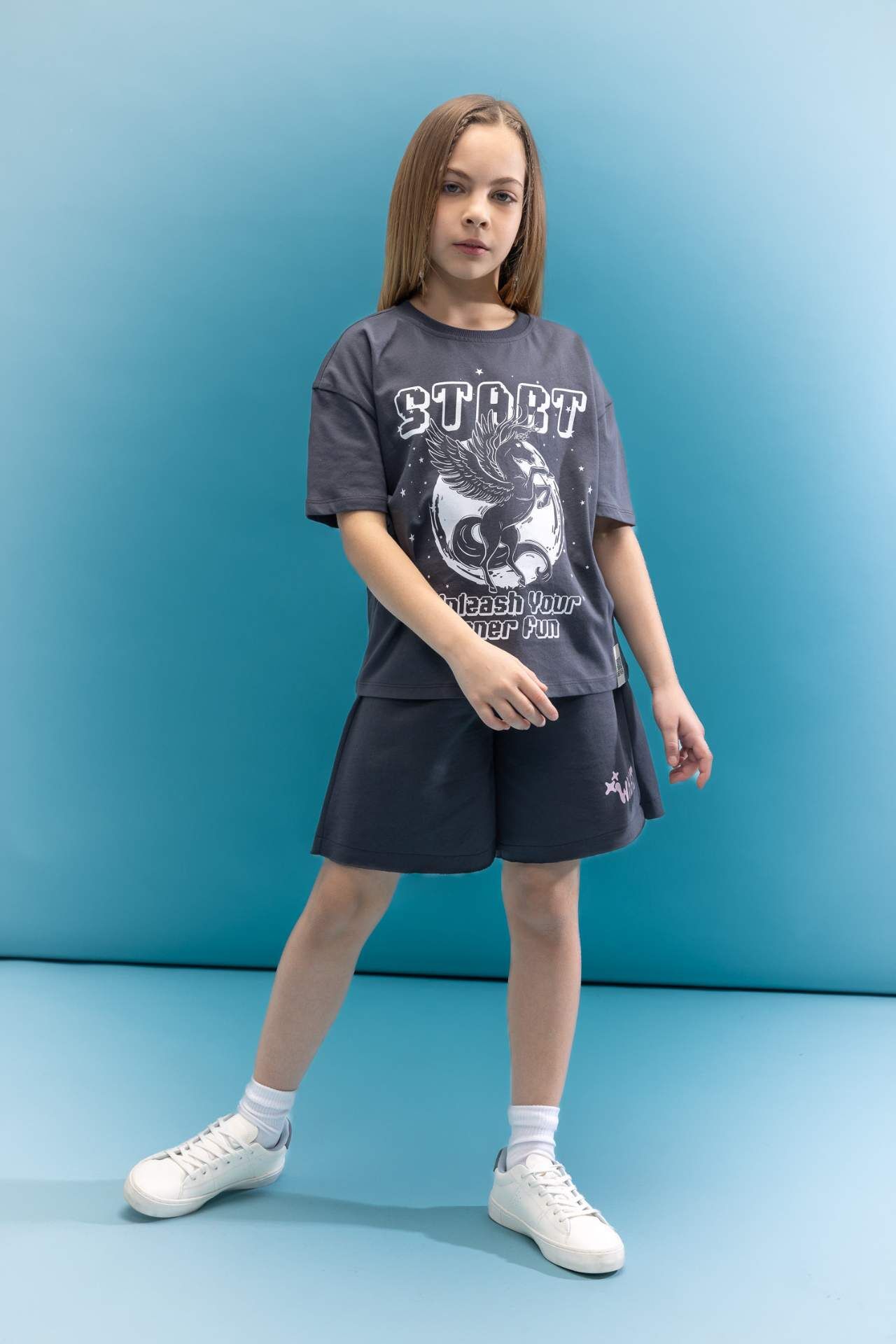 DeFactoFit Kız Çocuk Relax Fit Bisiklet Yaka Baskılı Kısa Kollu Tişört C8711A824SMAR31