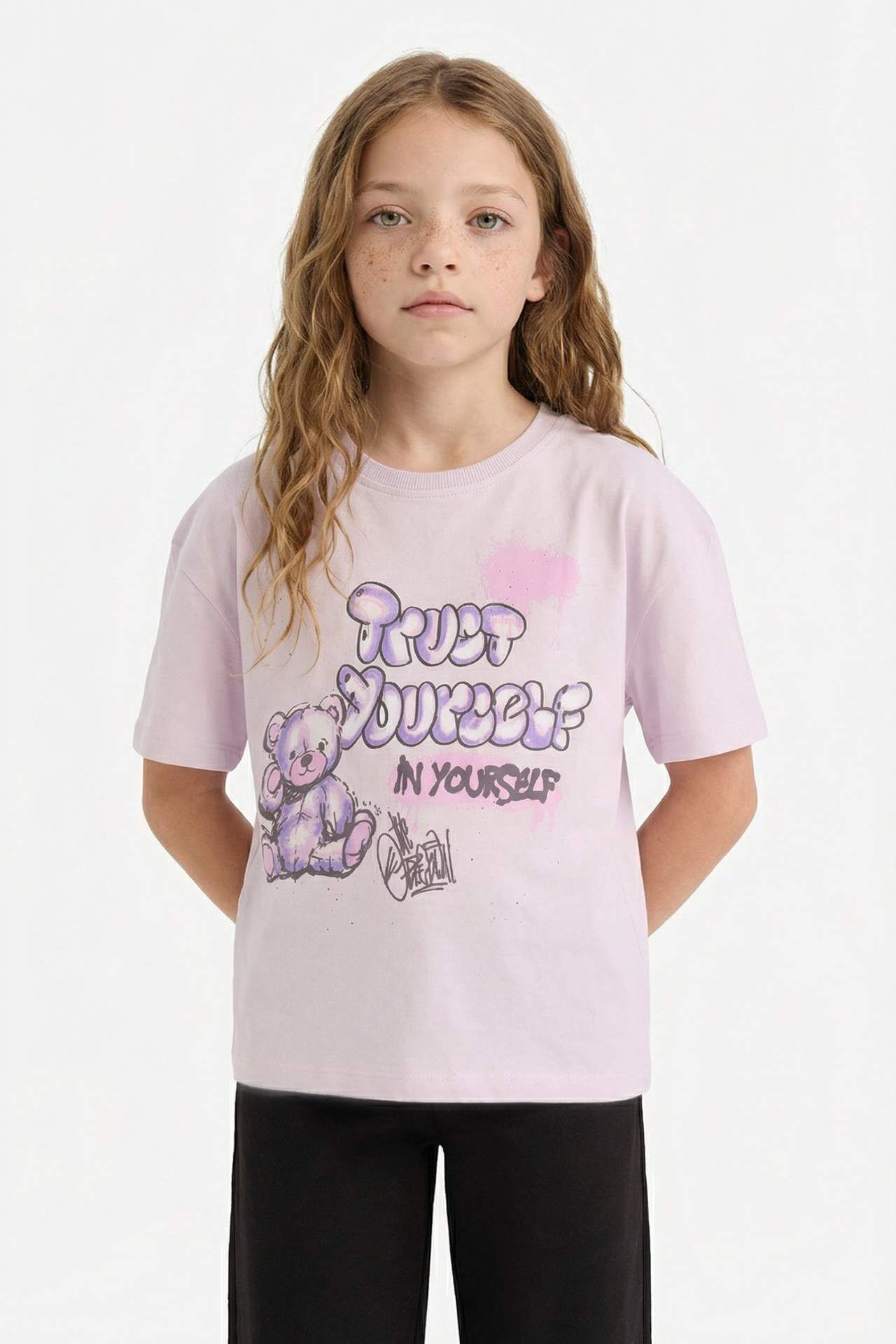 DeFacto Kız Çocuk Relax Fit Bisiklet Yaka Baskılı Kısa Kollu Tişört E0353A825SMPN425