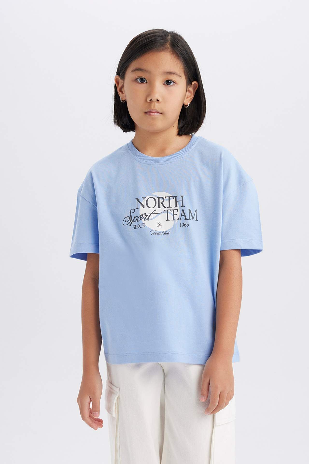 DeFacto Kız Çocuk Relax Fit Bisiklet Yaka Baskılı Kısa Kollu Tişört E0355A825SMBE551