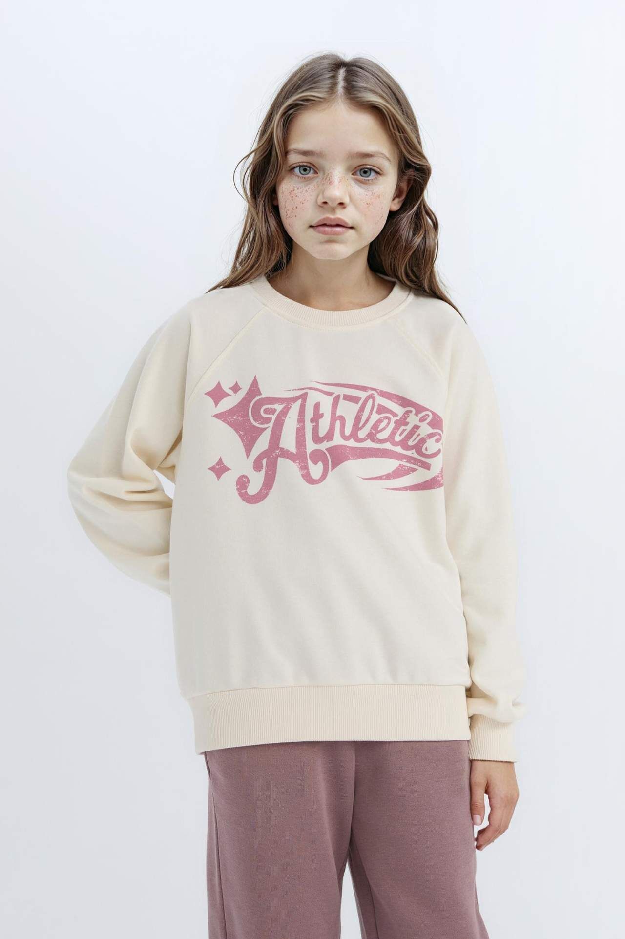 DeFacto Kız Çocuk Relax Fit Bisiklet Yaka Baskılı Sweatshirt D6988A824WNER99
