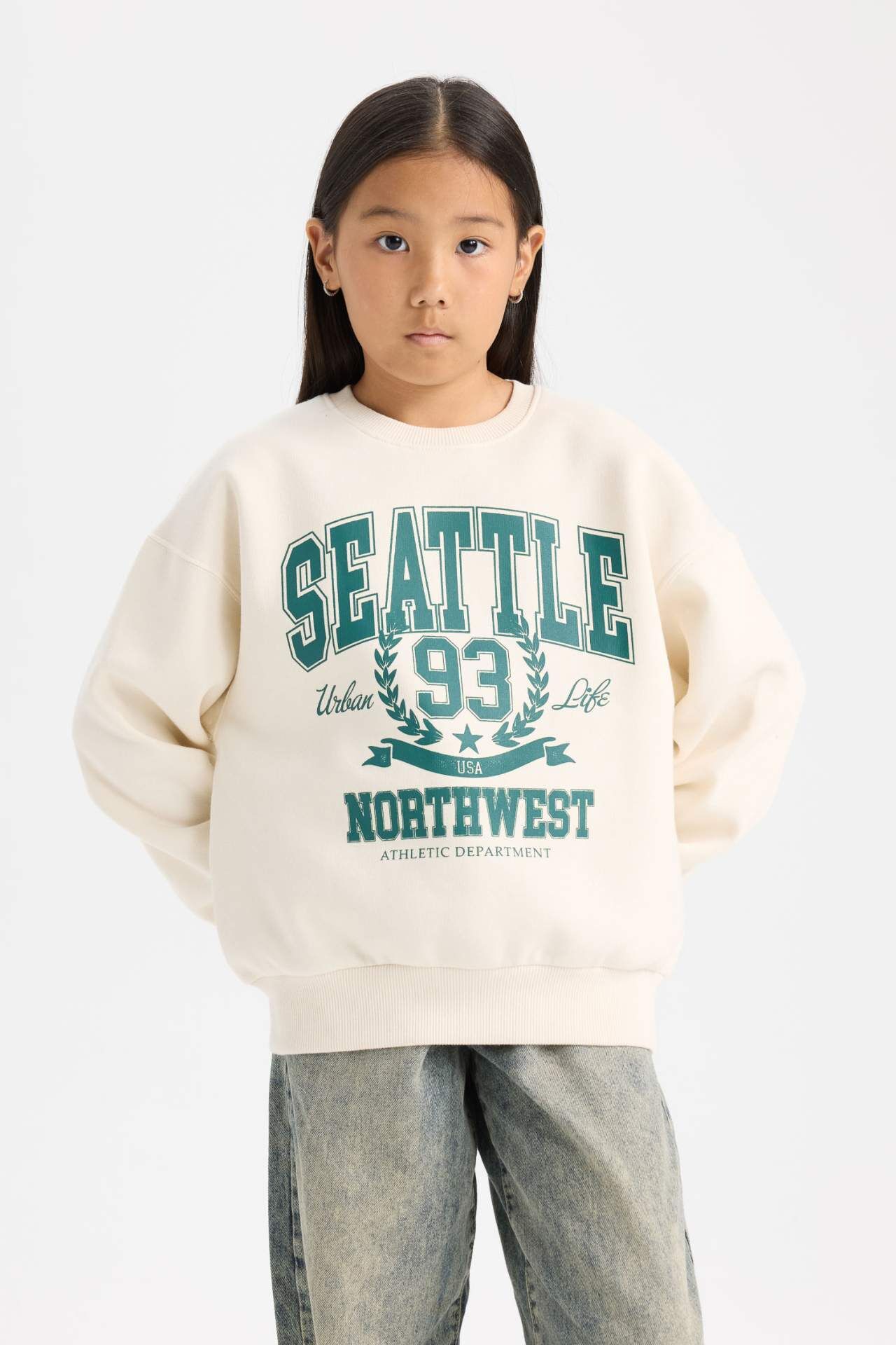 DeFacto Kız Çocuk Relax Fit Bisiklet Yaka Baskılı Sweatshirt D7057A824WNER99