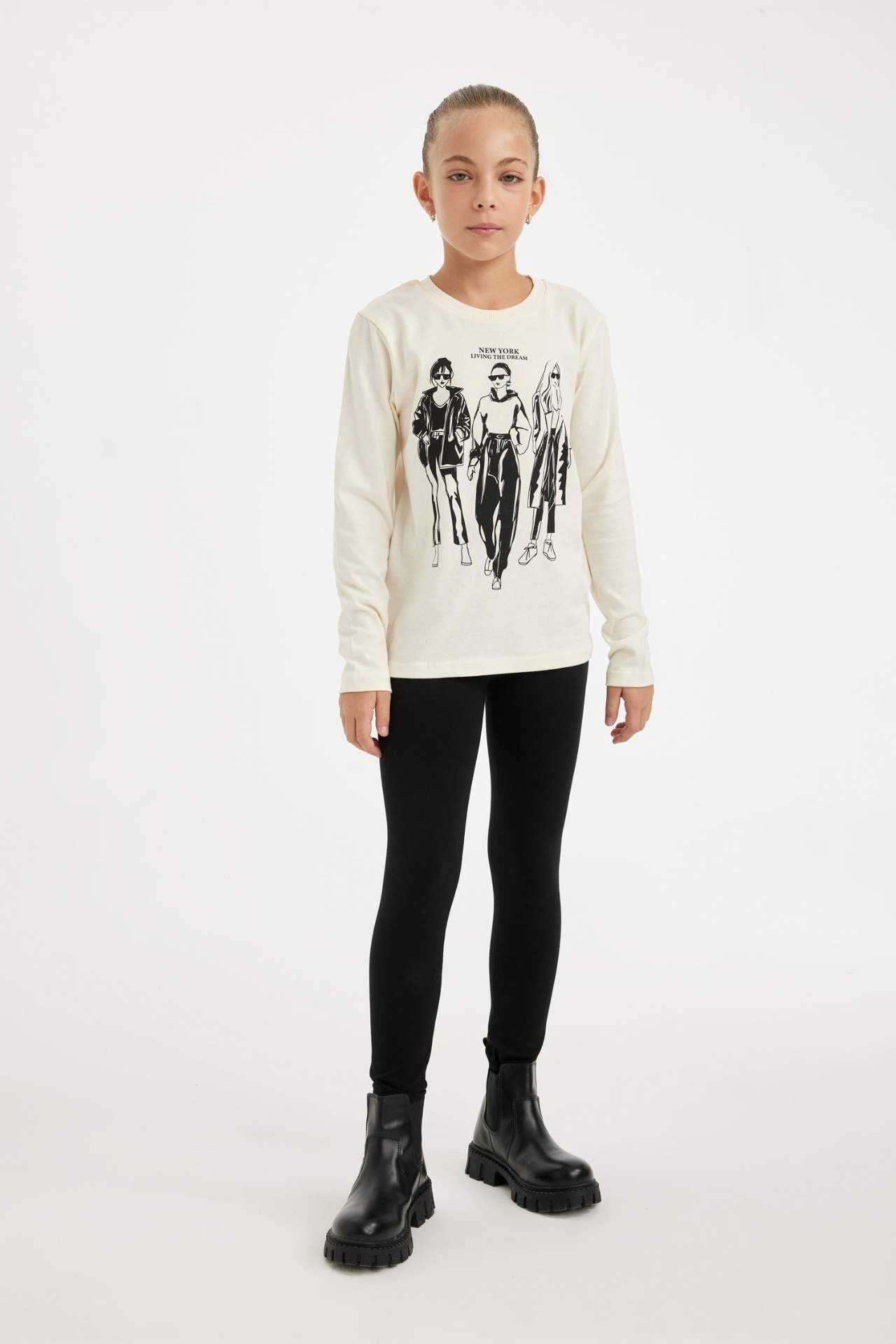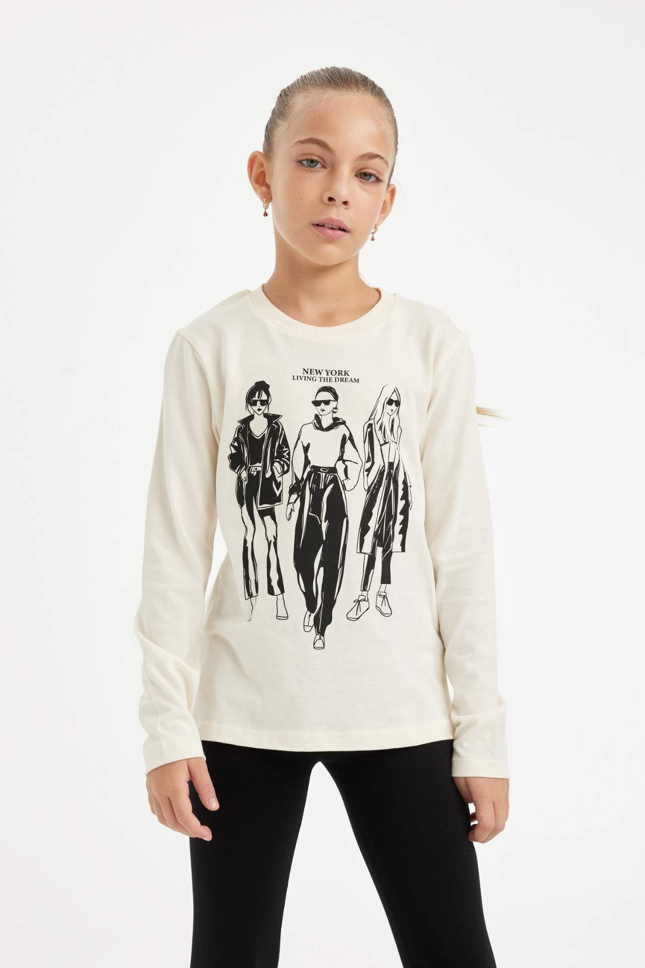 DeFacto Kız Çocuk Relax Fit Bisiklet Yaka Baskılı Uzun Kollu Tişört D3342A824AUER99