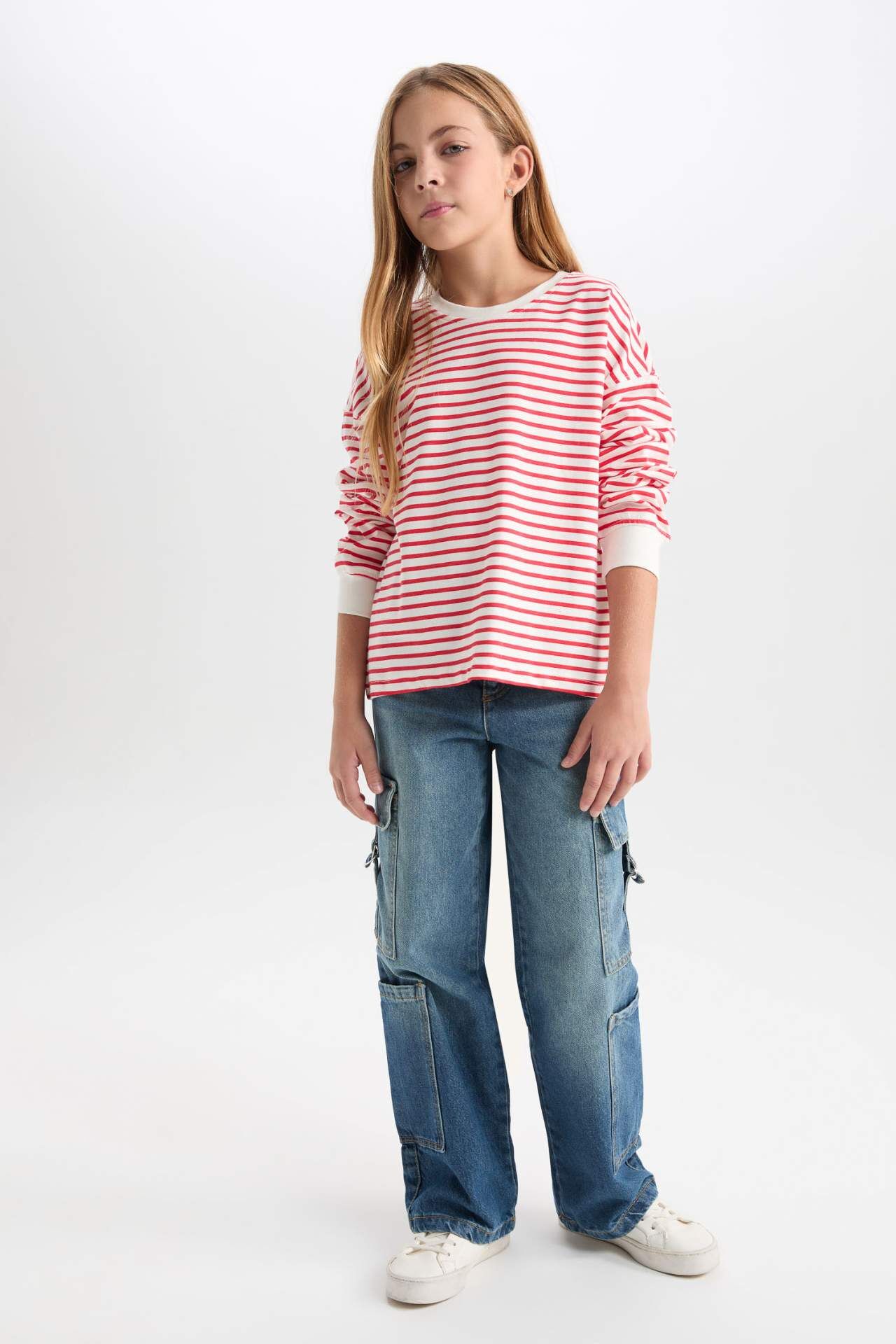 Kız çocuk relax fit bisiklet yaka çizgili sweatshirt, rahat kesimi ve canlı renklerdeki çizgileriyle enerjik bir görünüm sunar. Yumuşak kumaşı sayesinde gün boyu konfor sağlar, günlük kullanıma uygundur. Pamuk 100% Manken Bedeni: Göğüs: 0 Boy: 1,36 Basen: 0 Bel: 0
