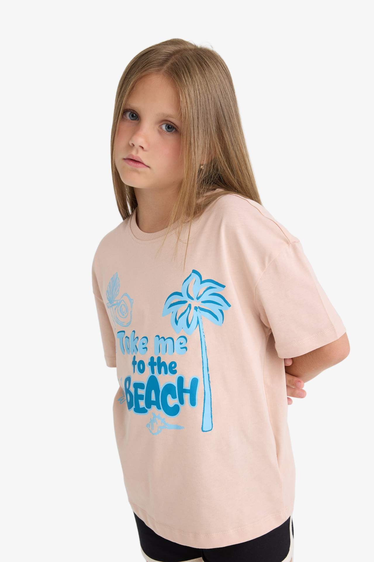 DeFacto Kız Çocuk Relax Fit Bisiklet Yaka Kısa Kollu Tişört E0389A825SMPN287
