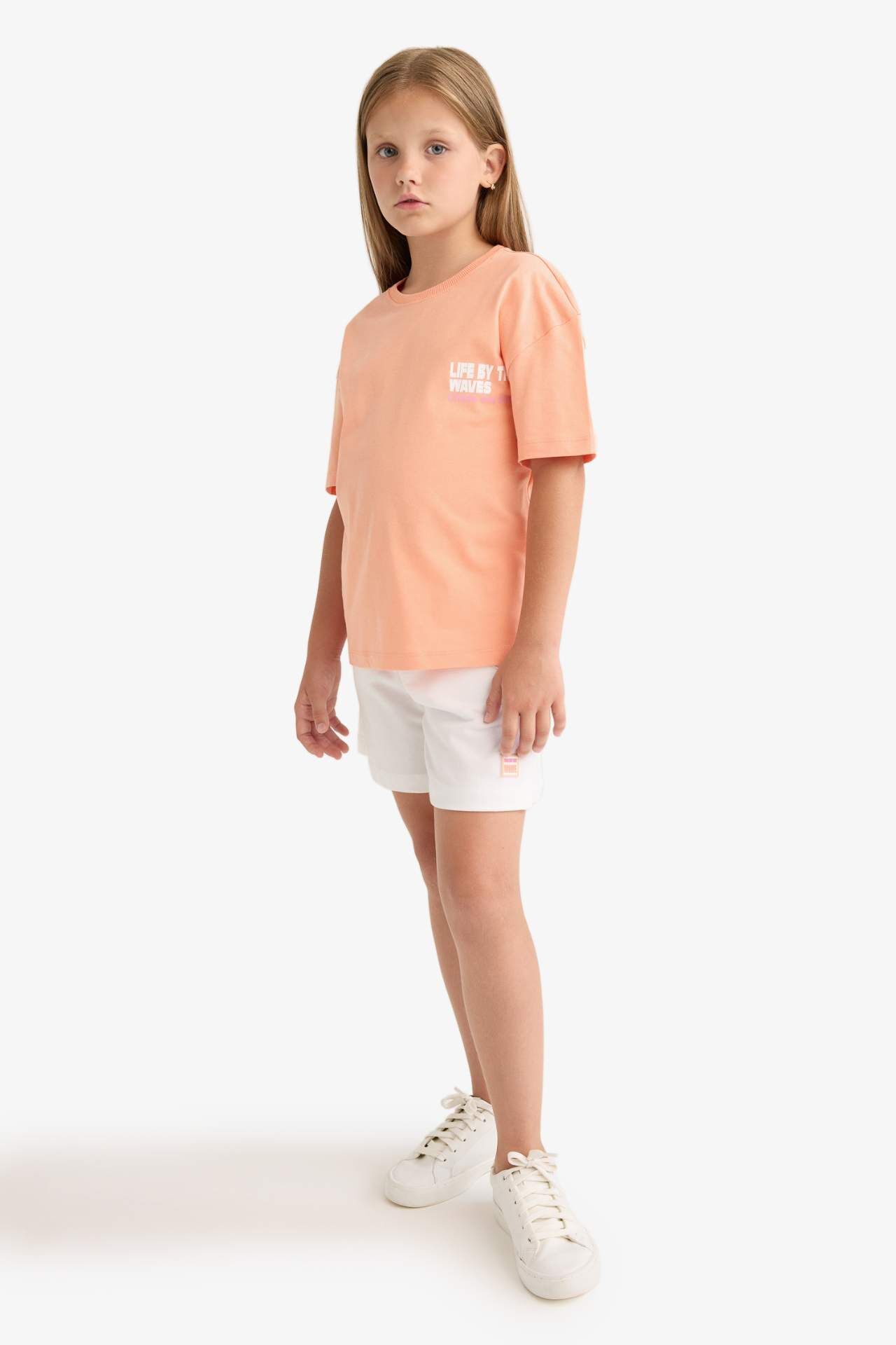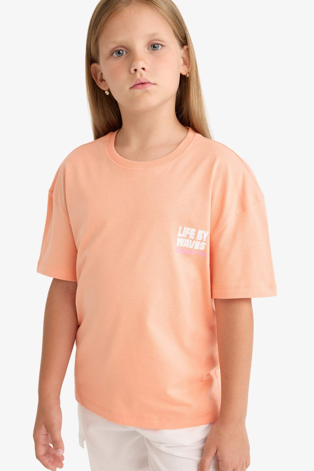 DeFacto Kız Çocuk Relax Fit Bisiklet Yaka Sırt Baskılı Kısa Kollu Tişört E0354A825SMOG189