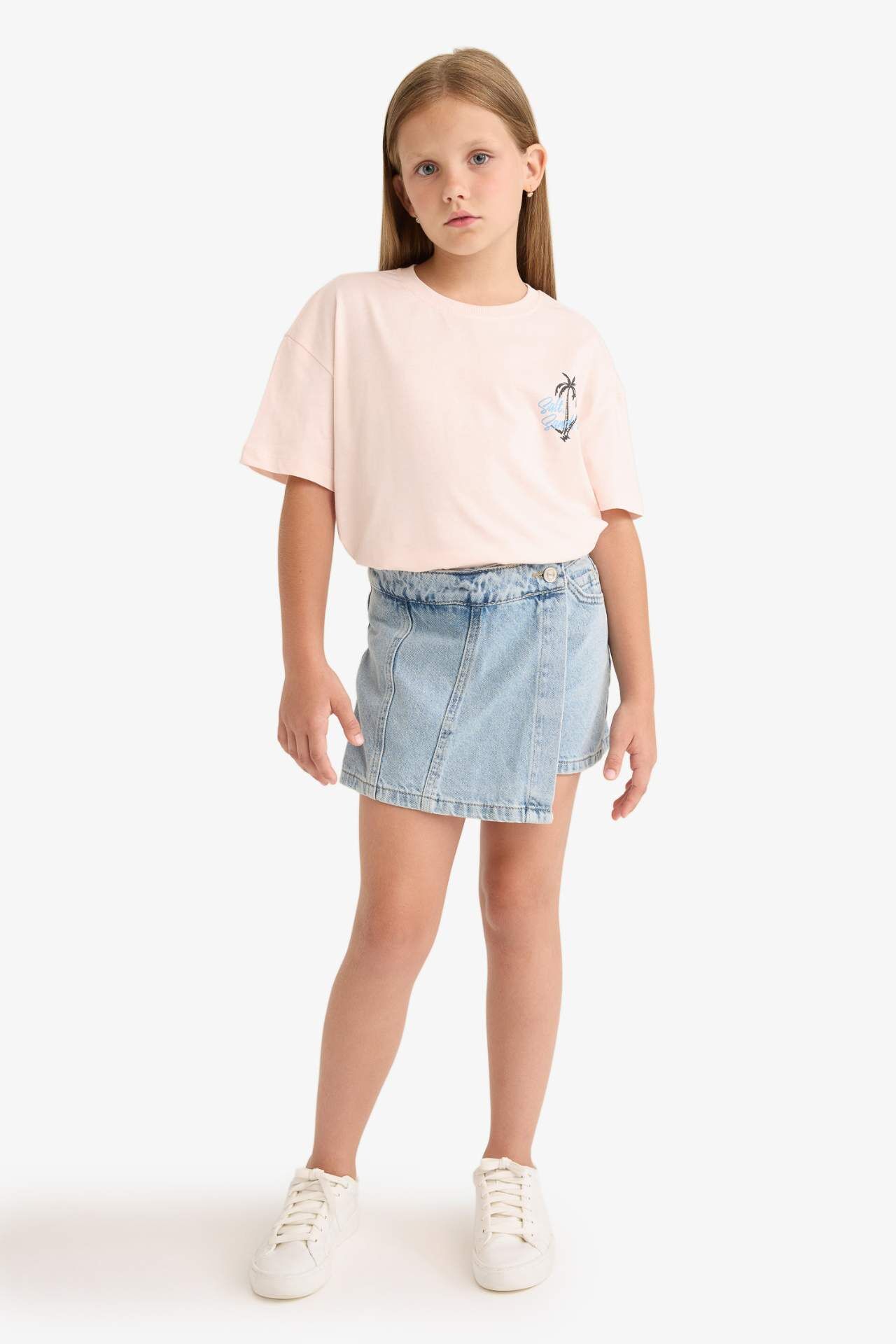 DeFacto Kız Çocuk Relax Fit Bisiklet Yaka Sırt Baskılı Kısa Kollu Tişört E0354A825SMPN447