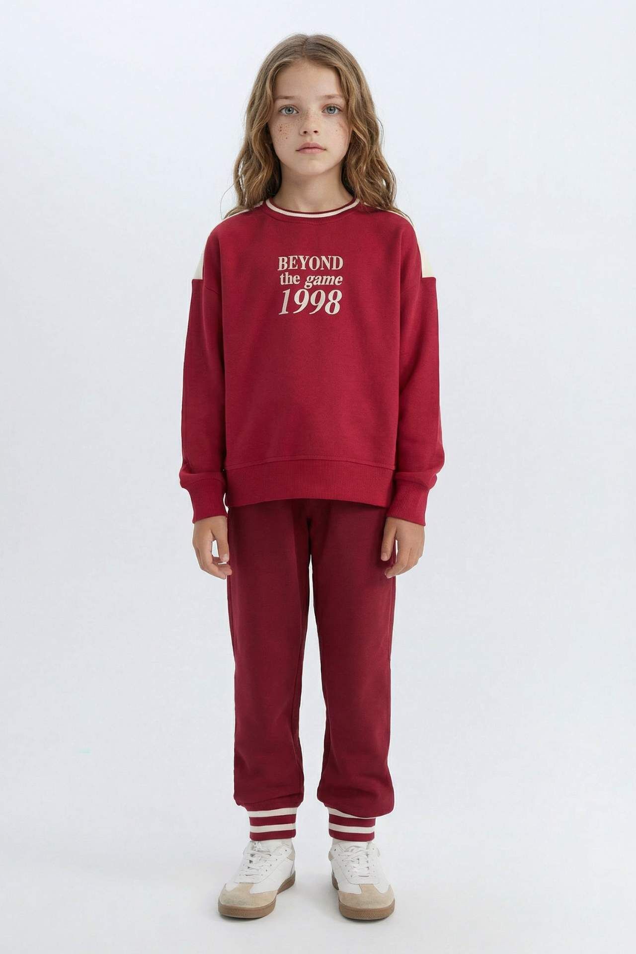 DeFacto Kız Çocuk Relax Fit Bisiklet Yaka Slogan Baskılı İçi Yumuşak Tüylü Sweatshirt D4274A824WNBR196