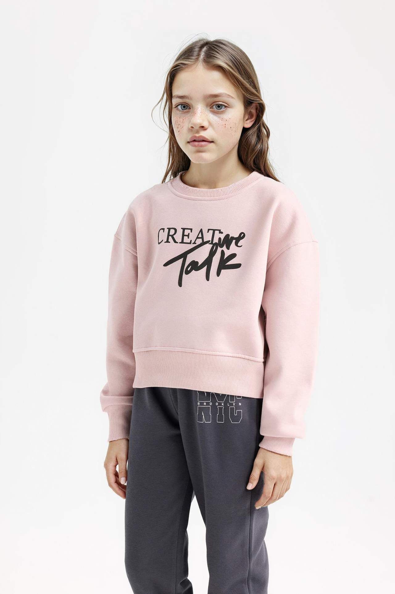 DeFacto Kız Çocuk Relax Fit Bisiklet Yaka Slogan Baskılı Sweatshirt D5454A824WNPR345