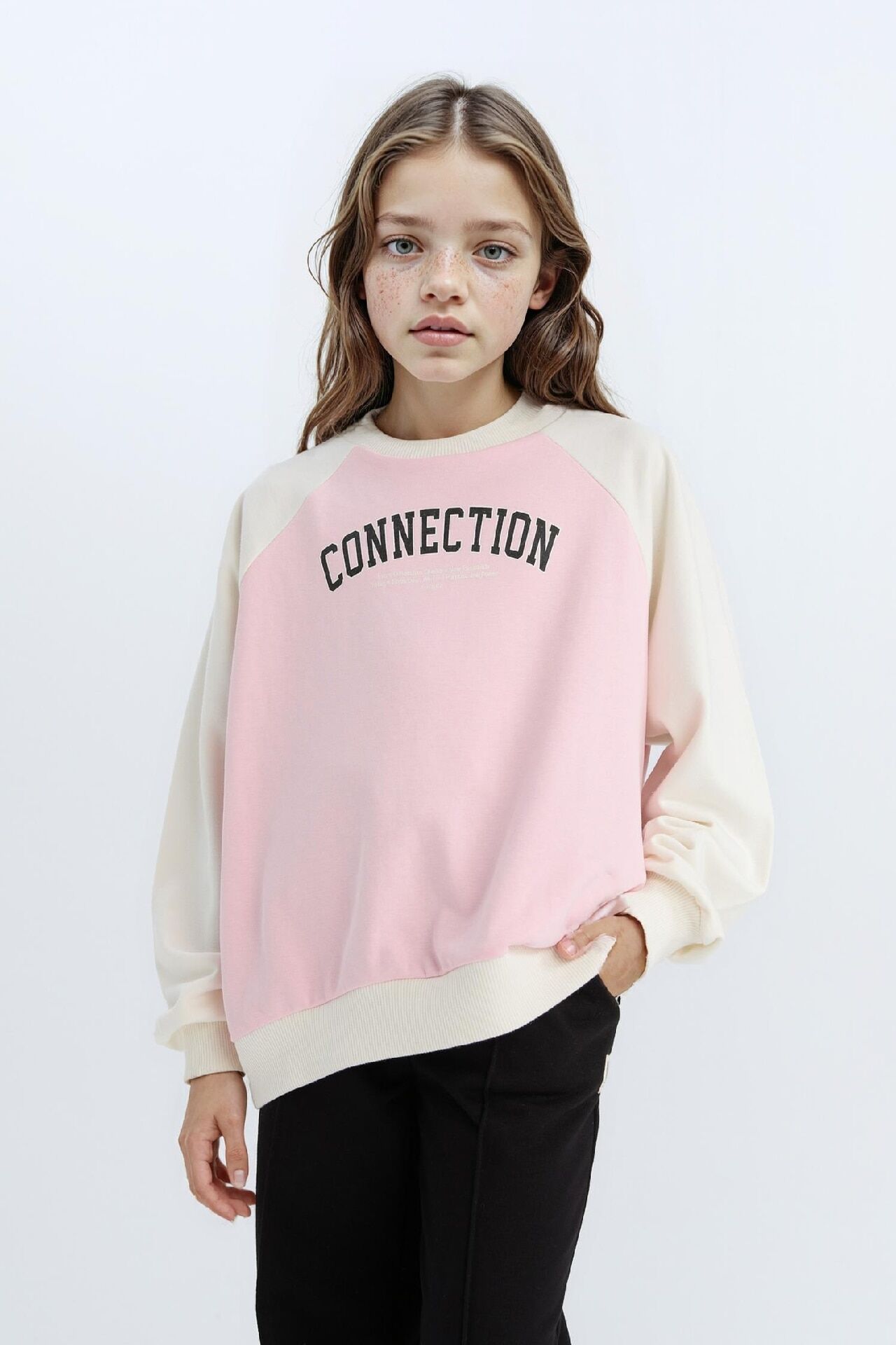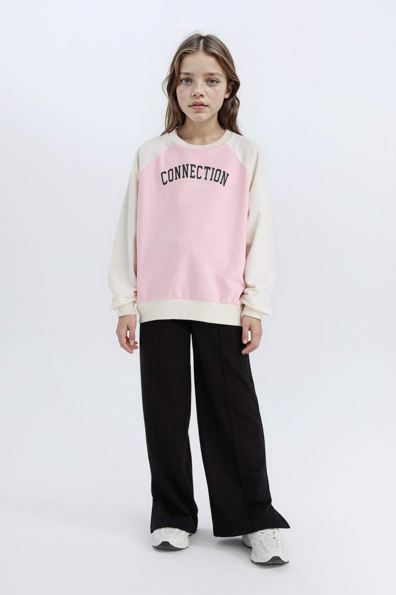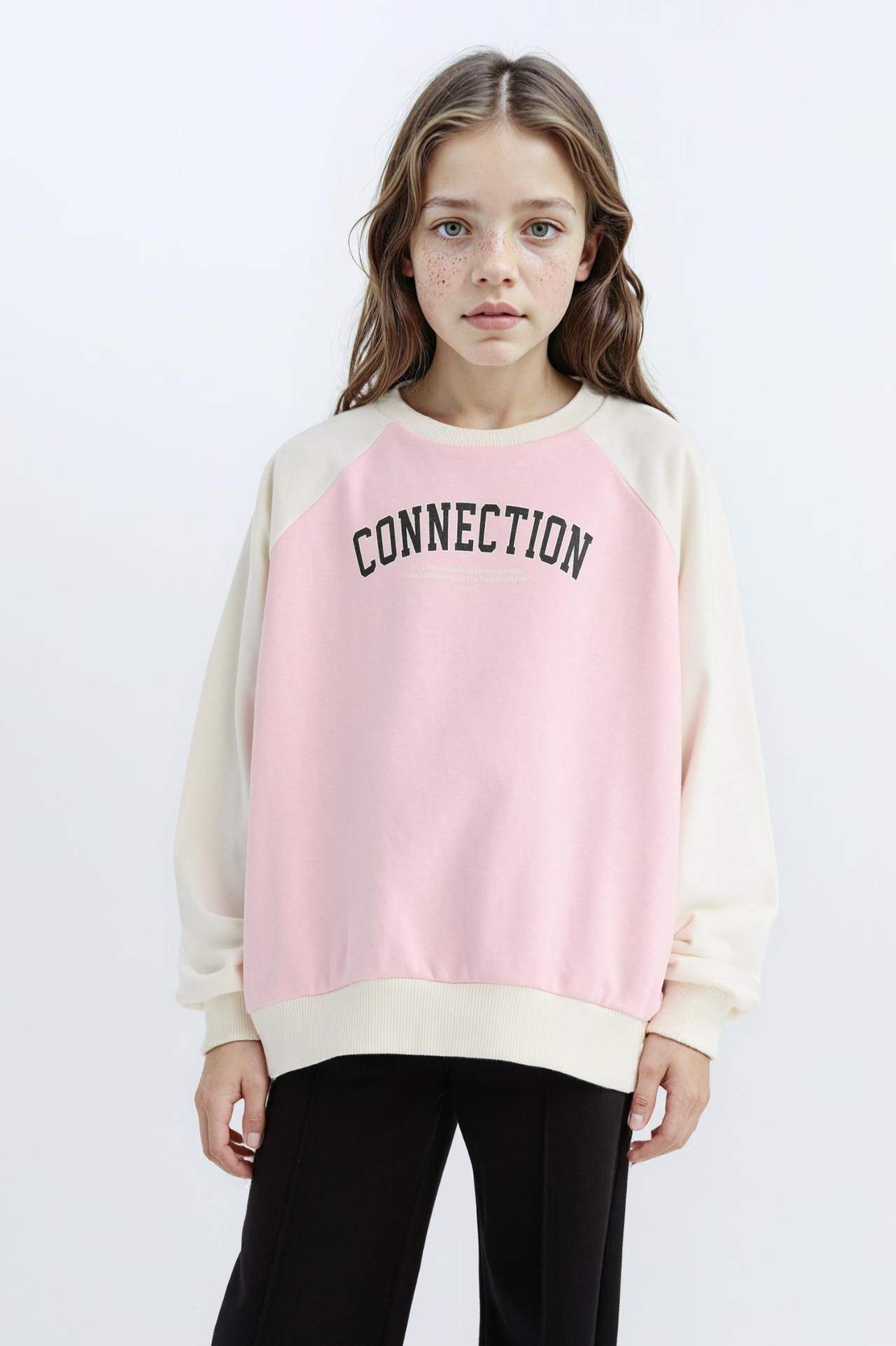 DeFacto Kız Çocuk Relax Fit Bisiklet Yaka Yazı Baskılı Sweatshirt