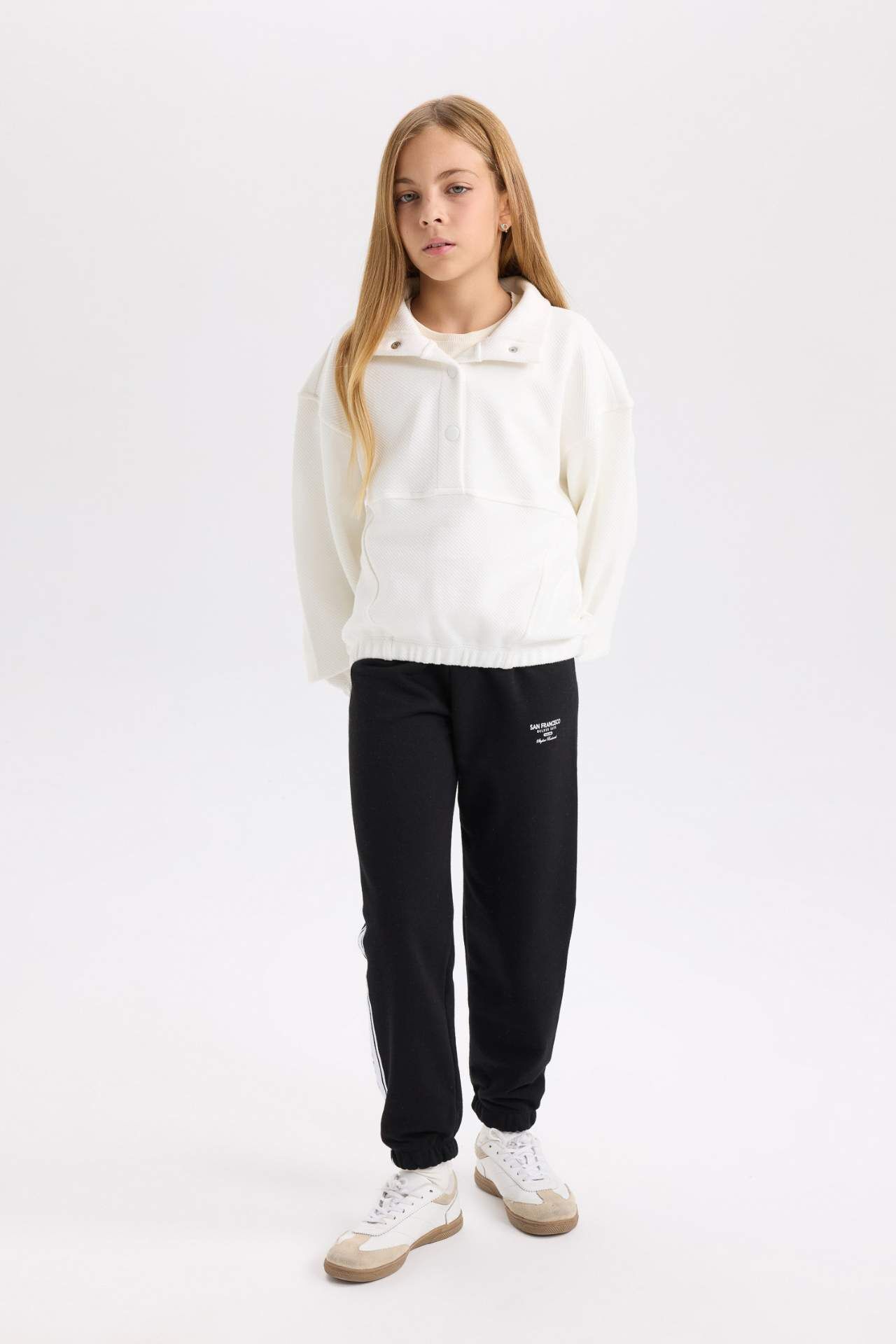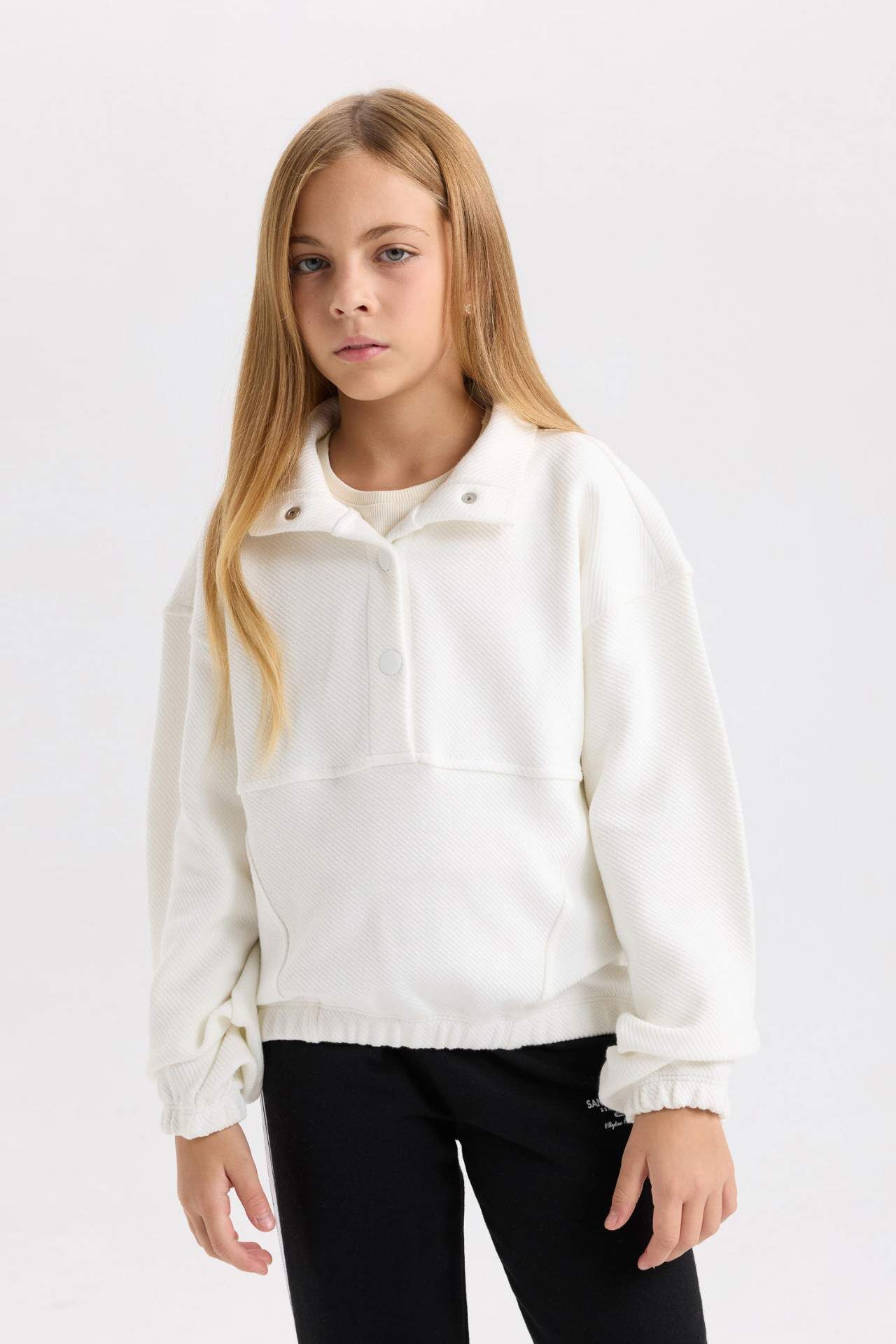 DeFacto Kız Çocuk Relax Fit Çıtçıtlı Dik Yaka Basic Düz Sweatshirt
