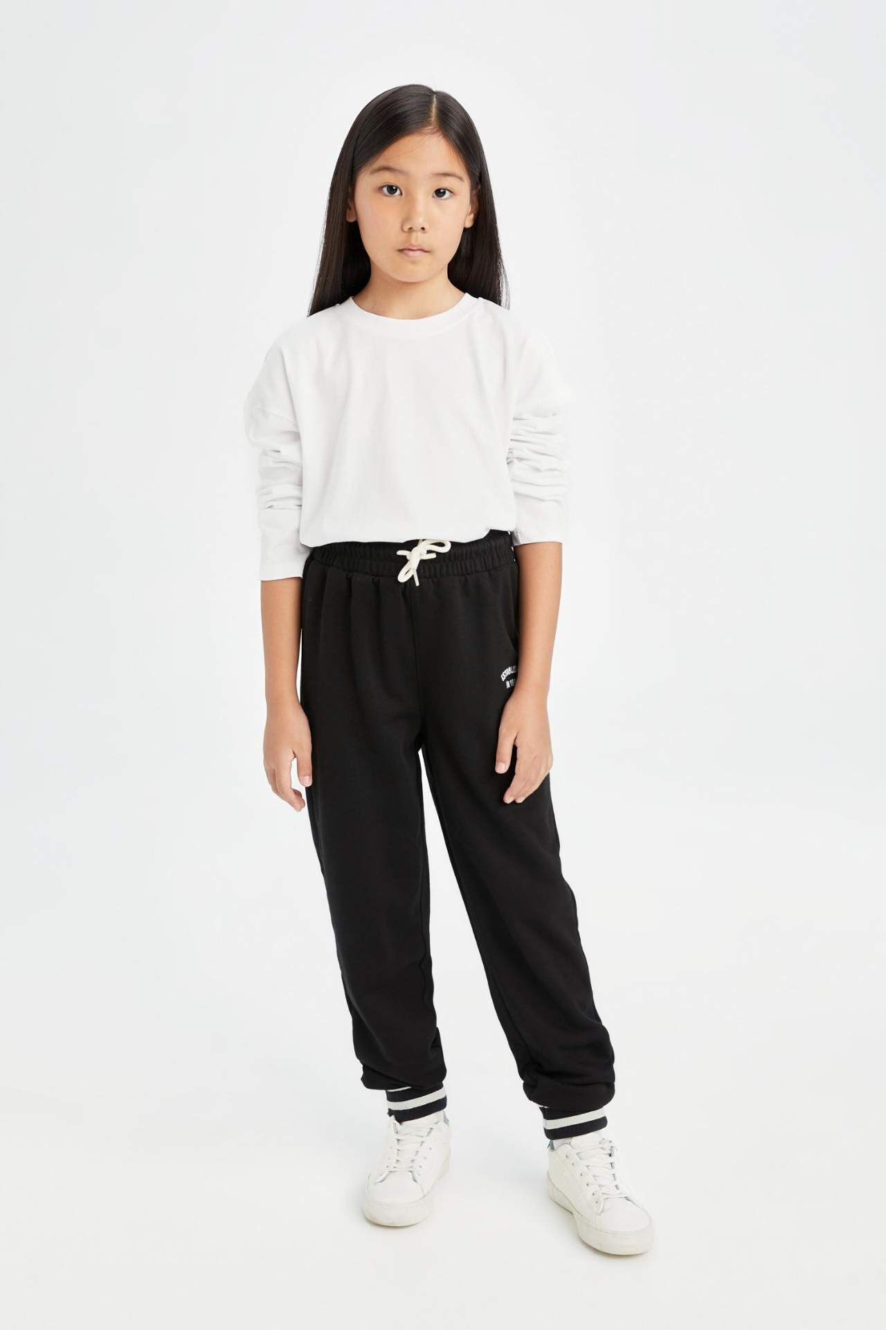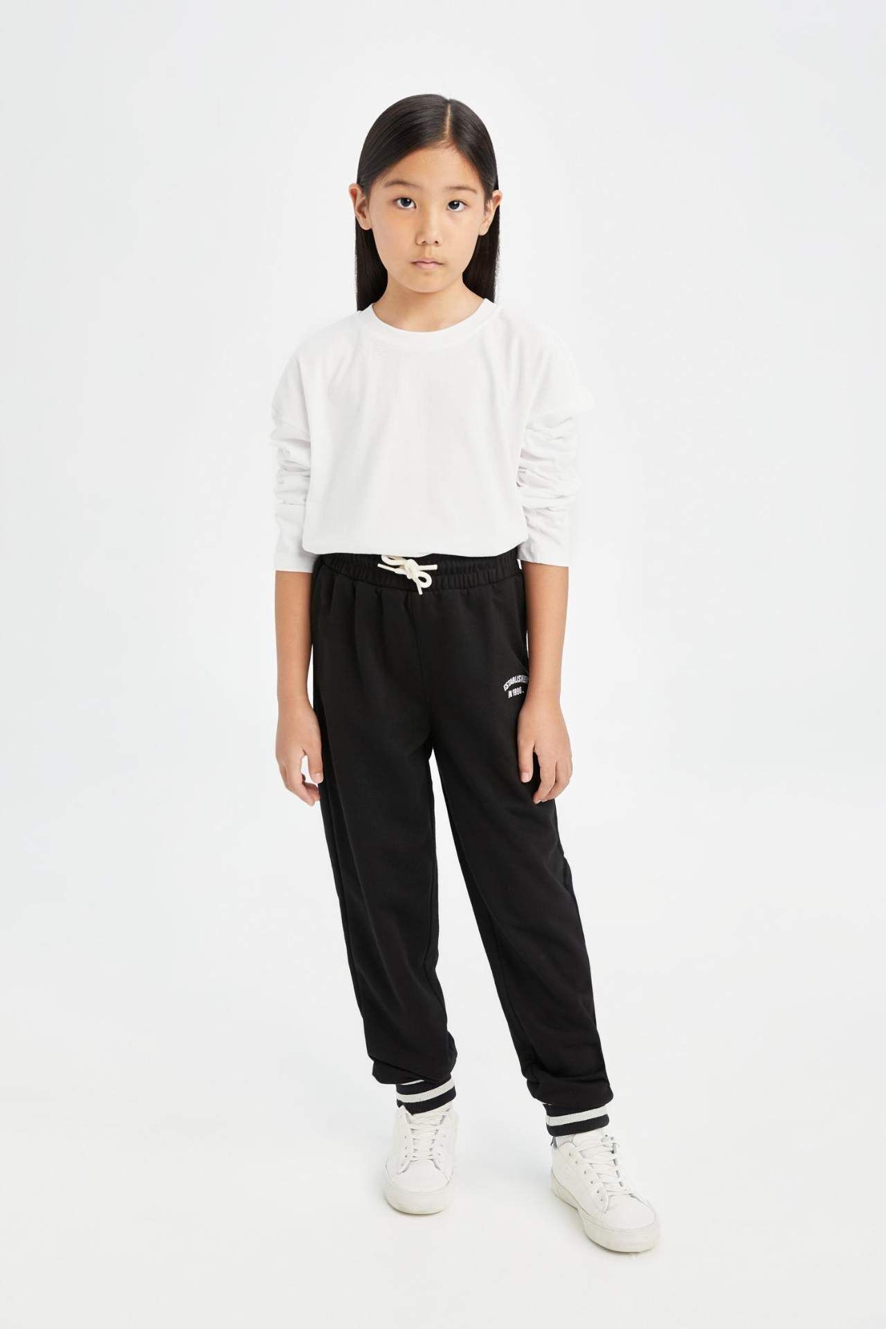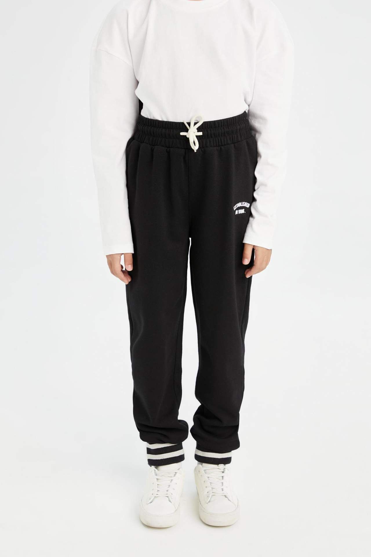 DeFacto Kız Çocuk Siyah Beli Bağcıklı Lastikli Paça Baskılı Jogger Eşofman Altı