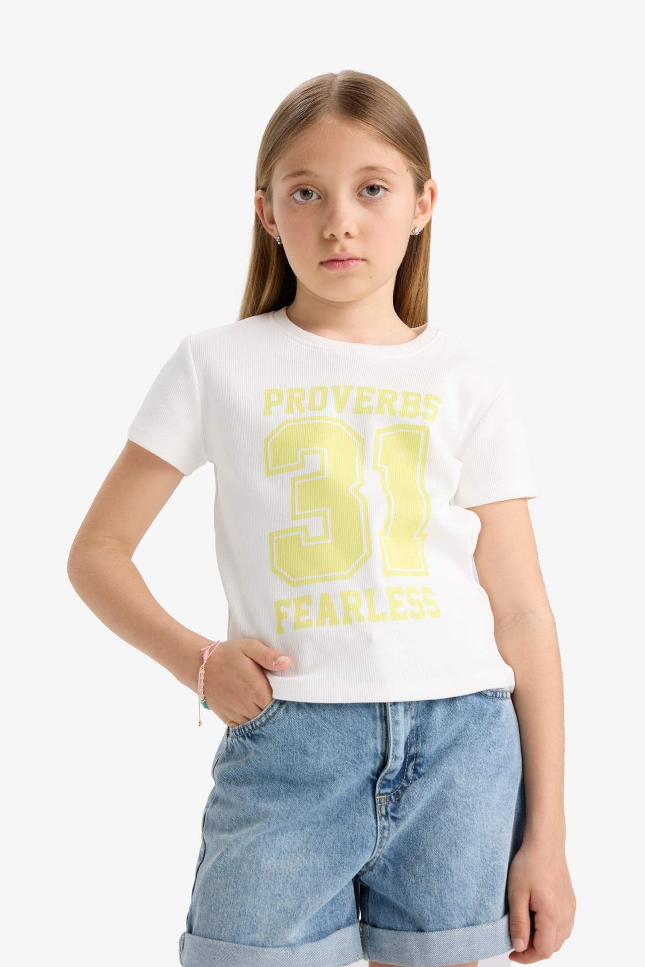 Slim fit dar kesimi ve şık baskısıyla bu bisiklet yaka tişört, kız çocuklarına modern ve rahat bir tarz sunar. Yumuşak kumaşı sayesinde hem şık hem de konforlu bir kullanım sağlar. Pamuk 99%,Poliester 1%,Pamuk 99%,Poliester 1%,Pamuk 99%,Poliester 1%,Pamuk 99%,Poliester 1%,Pamuk 99%,Poliester 1% Manken Bedeni: Göğüs: 0 Boy: 1,34 Basen: 0 Bel: 0