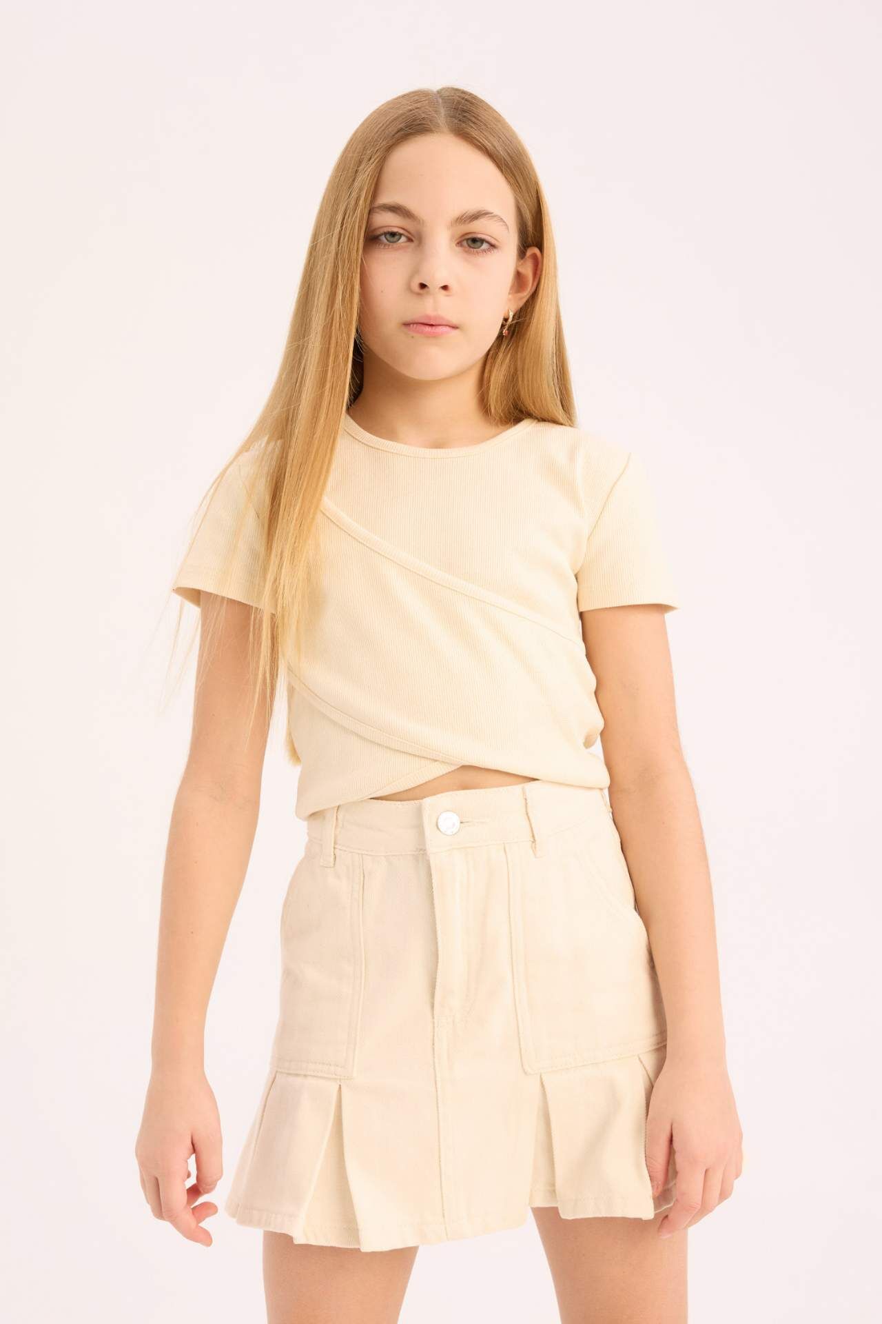 DeFacto Kız Çocuk Slim Fit Dar Kesim Bisiklet Yaka Kısa Kollu Tişört D9269A825SMER83