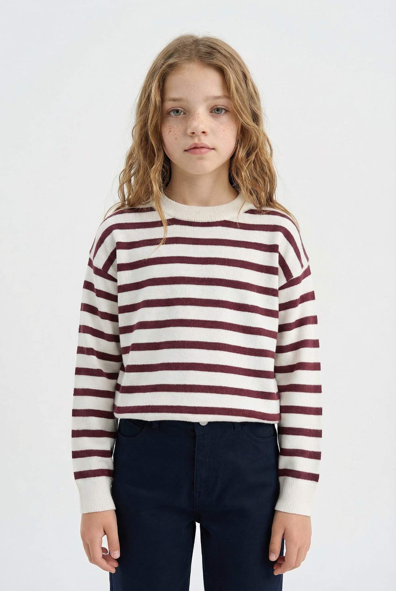Kız çocuk standart fit bisiklet yaka çizgili kazak, klasik çizgili deseni ve yumuşak dokusuyla hem şık hem rahat bir görünüm sunar. Günlük kullanım ve serin havalar için ideal bir parçadır. Akrilik 100%,Akrilik 100%,Akrilik 100%,Akrilik 100%,Akrilik 100%,Akrilik 100%