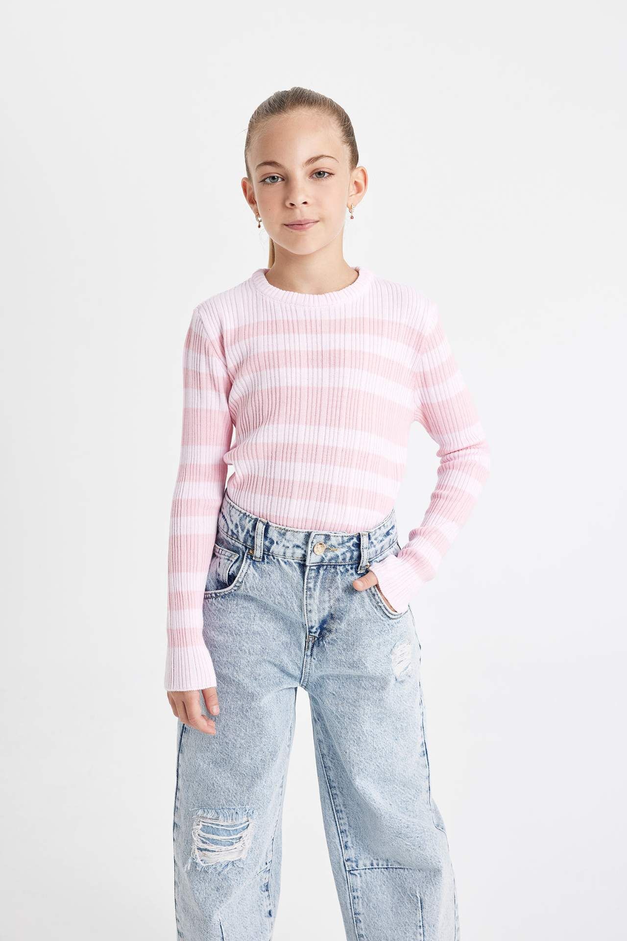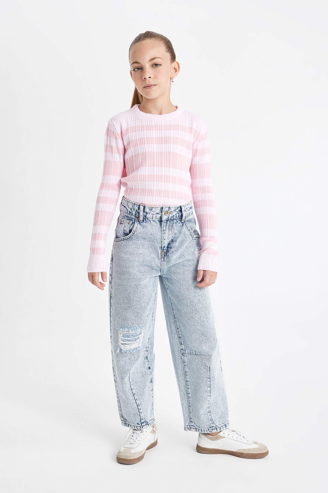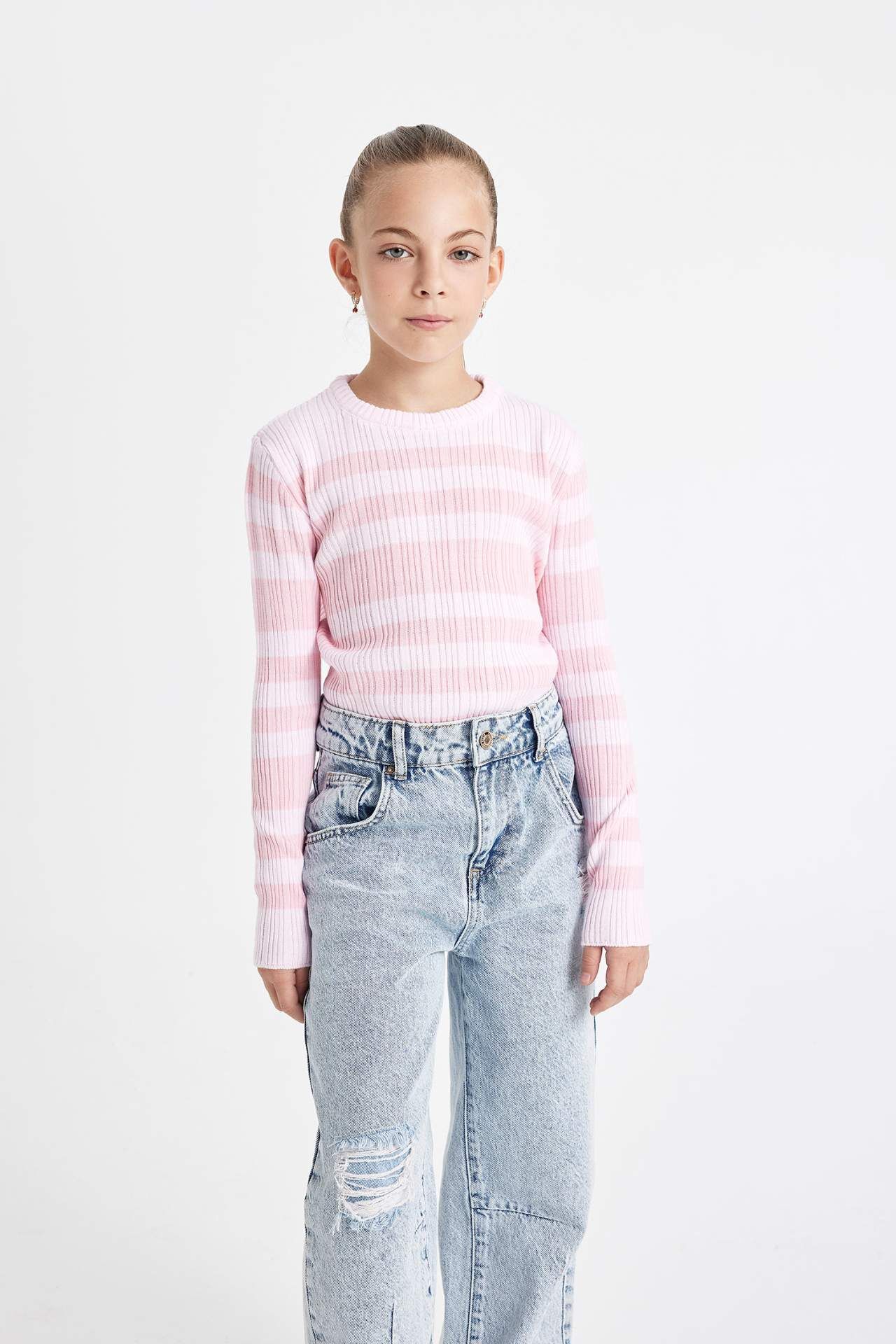 DeFactoFit Kız Çocuk Standart Fit Bisiklet Yaka Kazak C6974A824AUPN671