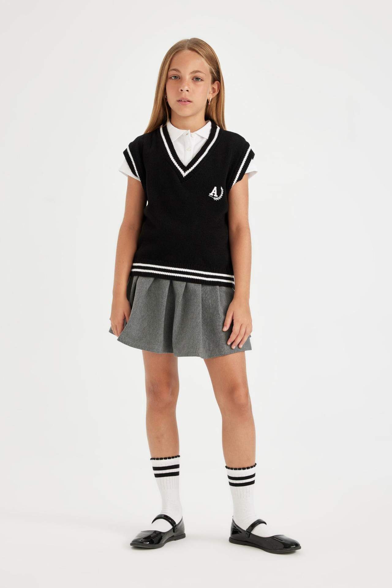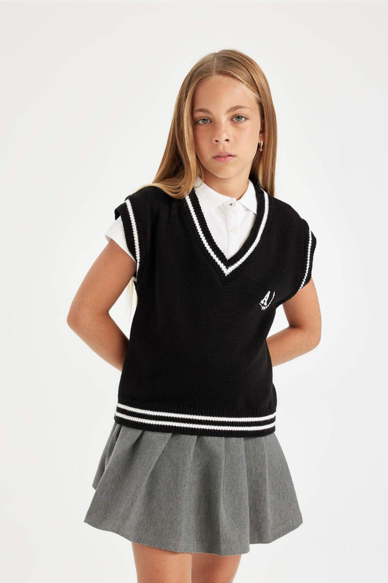 DeFactoFit Kız Çocuk Standart Fit Siyah Okul Süveteri
