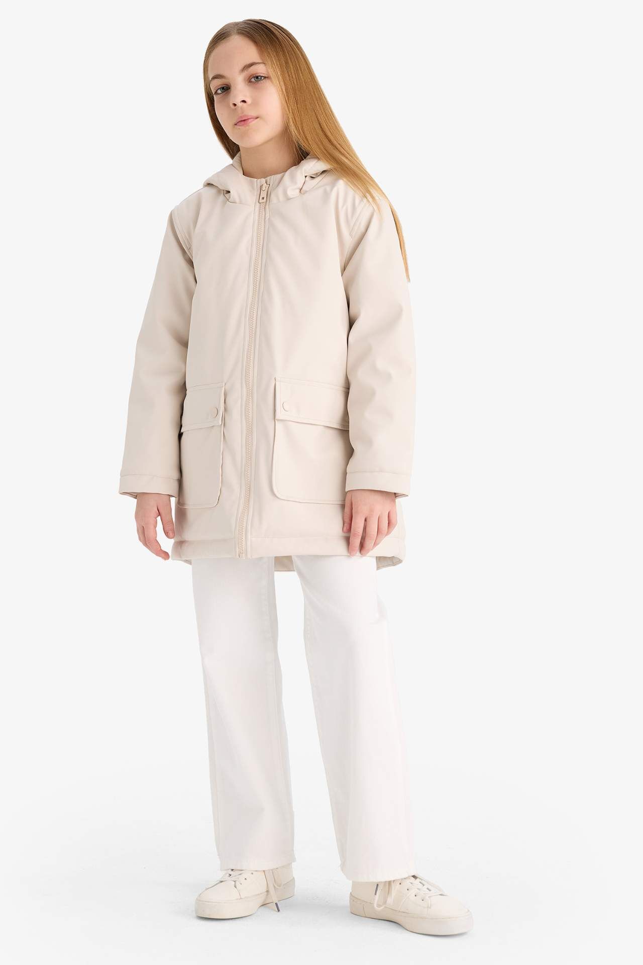 DeFacto Kız Çocuk Su İtici Kapüşonlu Fermuarlı Yağmurluk C5228A825AUBG776
