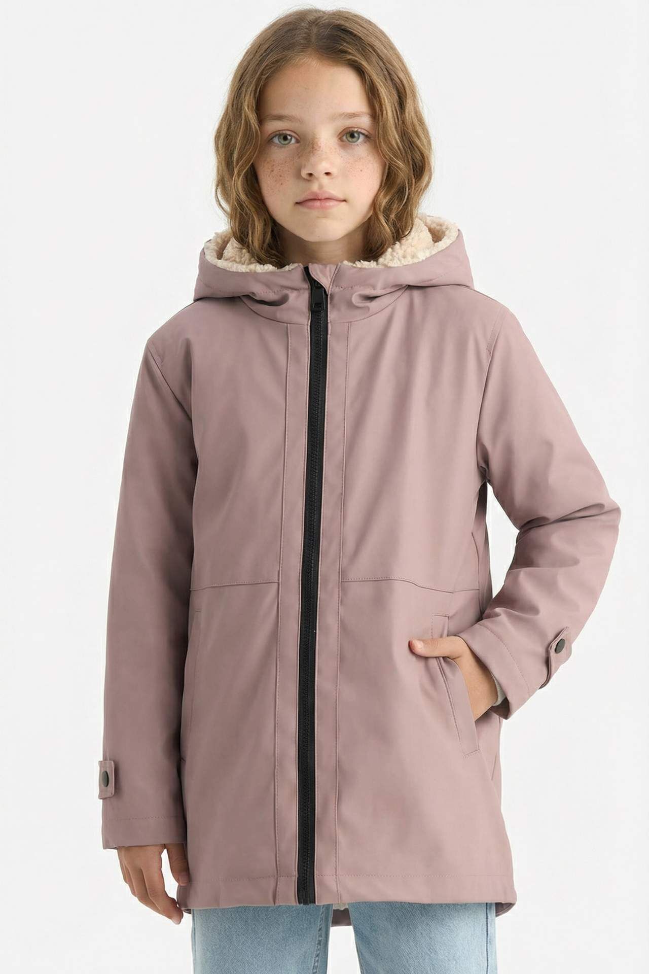 Kız Çocuk Su İtici Kapüşonlu Yağmurluk