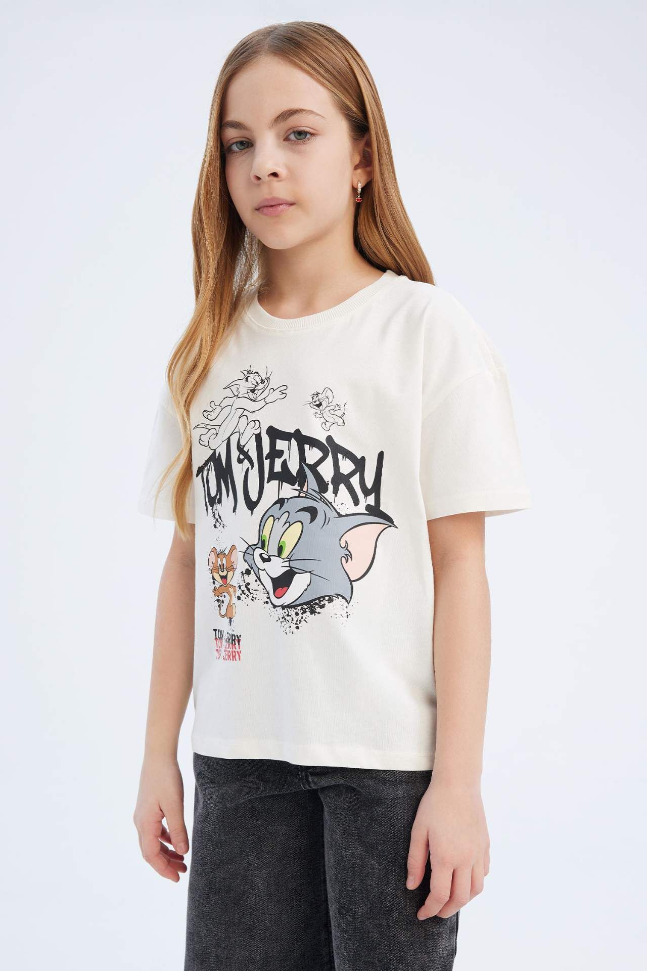 DeFacto Kız Çocuk Tom & Jerry Relax Fit Bisiklet Yaka Kısa Kollu Tişört