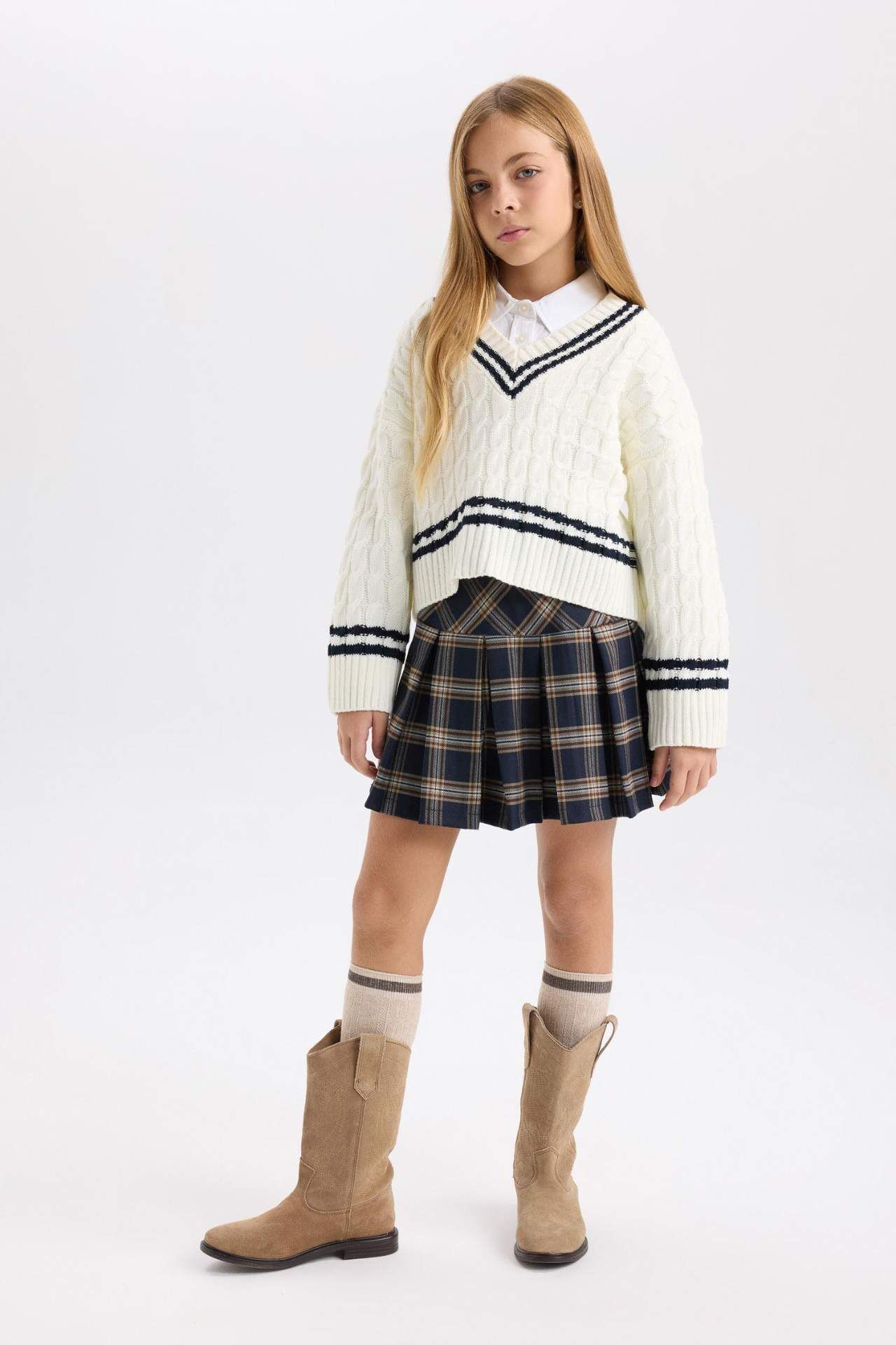 DeFacto Kız Çocuk V Yaka Saç Örgülü Triko Kazak