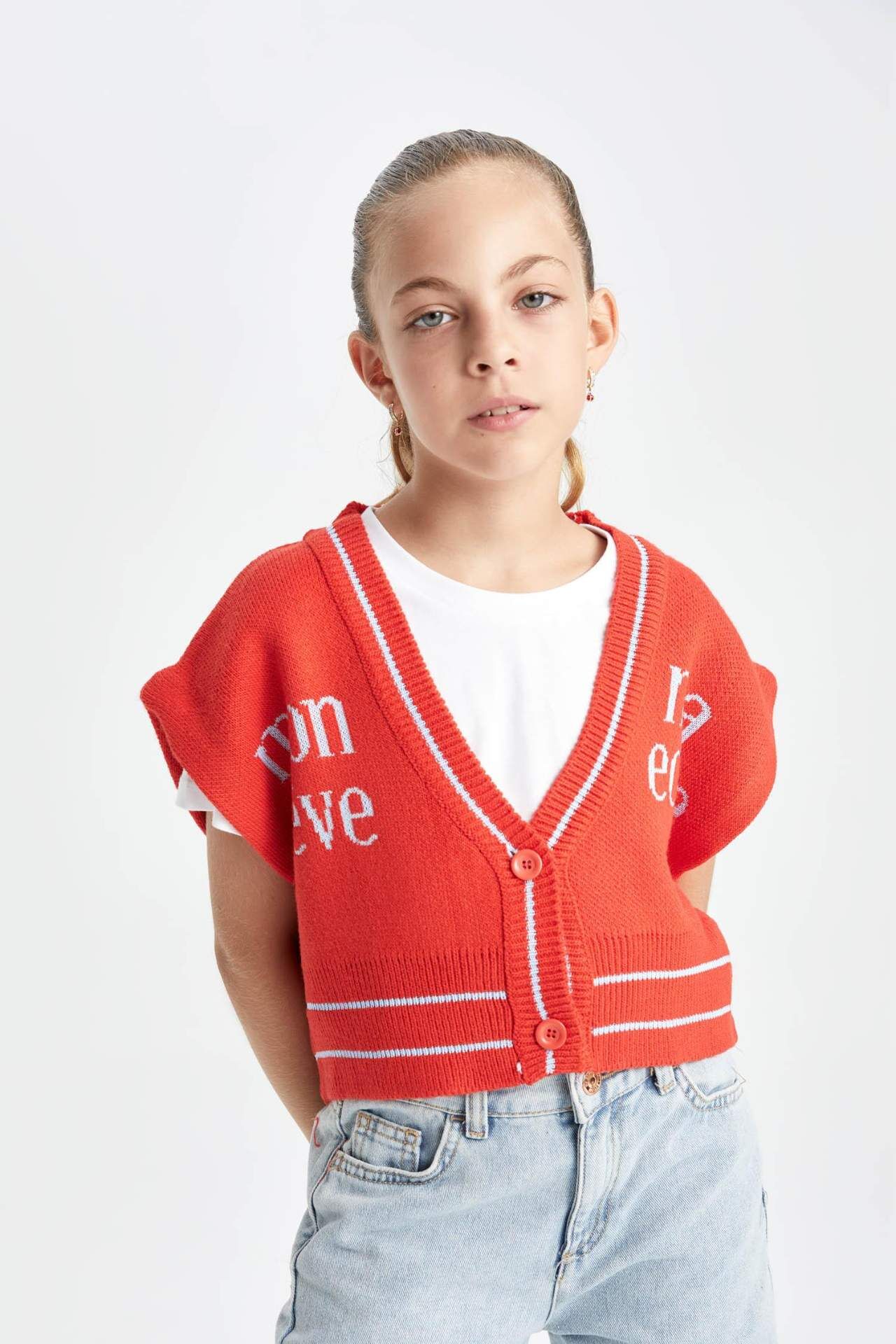 DeFactoFit Kız Çocuk V Yaka Yelek