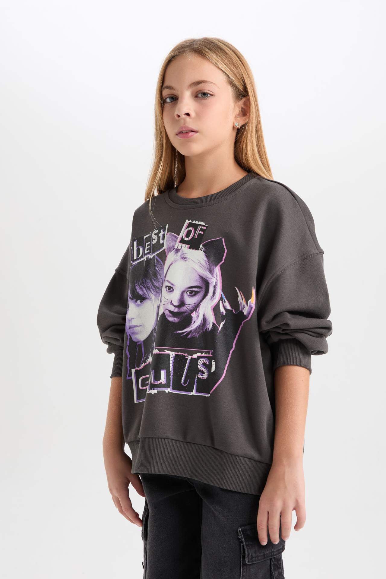 DeFacto Kız Çocuk Wednesday Oversize Fit Bisiklet Yaka Sweatshirt