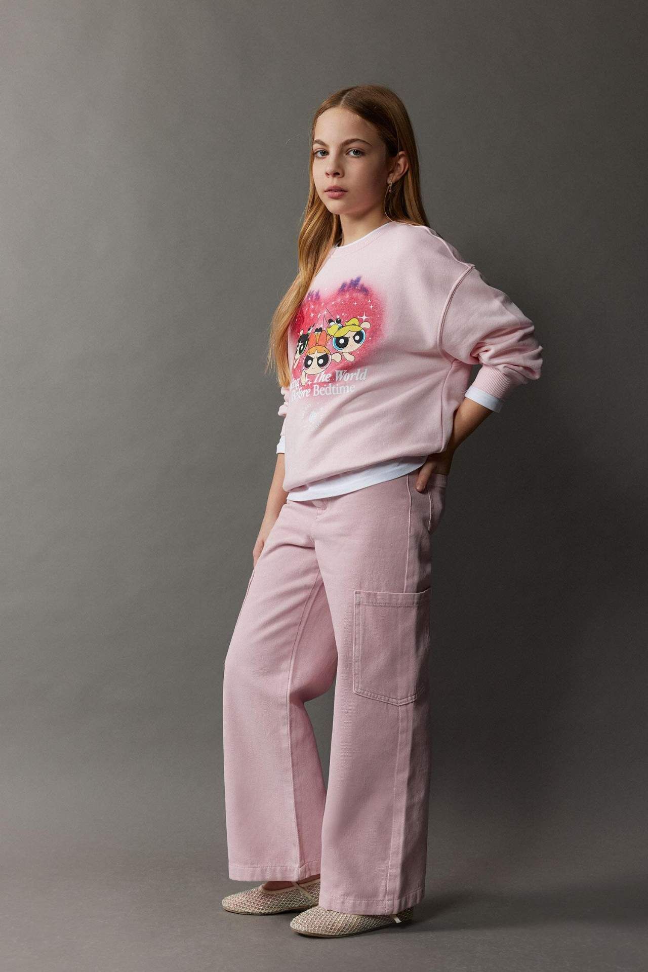 Geniş paça kesimli pamuklu jean pantolon. Kargo cep detayıyla şıklığı ve rahatlığı bir arada sunar. Pembe rengiyle kız çocuklar için ideal bir seçim. İlkbahar/Yaz koleksiyonunun temel parçası. Pamuk 100%