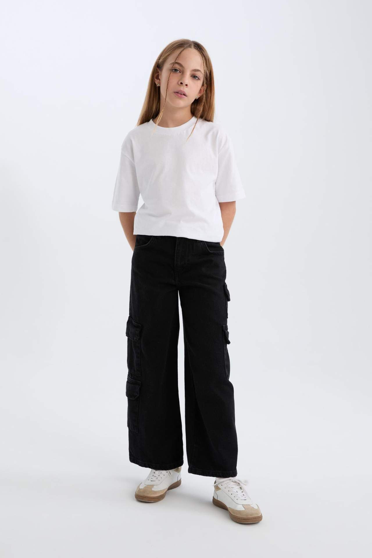 DeFacto Kız Çocuk Wide Leg Kargo Geniş Paça Jean Pantolon D7373A825SMNM36