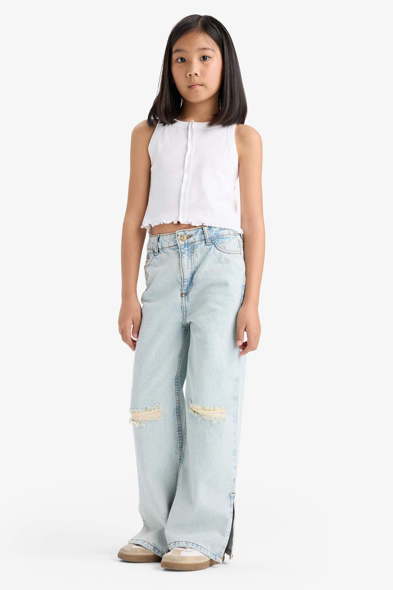 DeFacto Kız Çocuk Wide Leg Yırtık Detaylı Geniş Paça Jean Pantolon Z4708A625SPNM63
